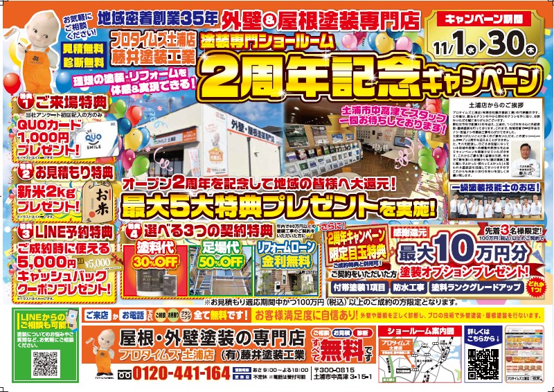 土浦・つくばを中心に、外壁塗装・屋根塗装でお世話になっております、プロタイムズ土浦店です。