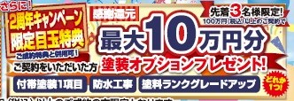 先着3名様限定!100万円(税込)以上のご契約で、最大10万円分塗装オプションプレゼント!