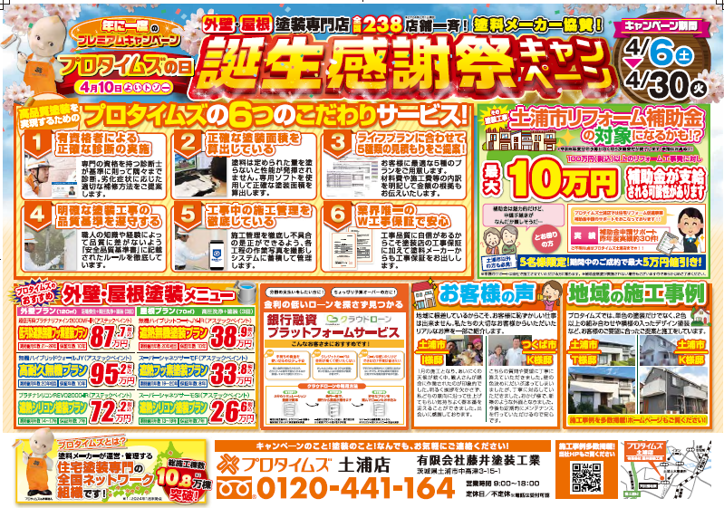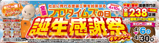 4月10日(良い塗装の日)を「プロタイムズの日」として、お得なキャンペーンを行います。