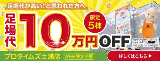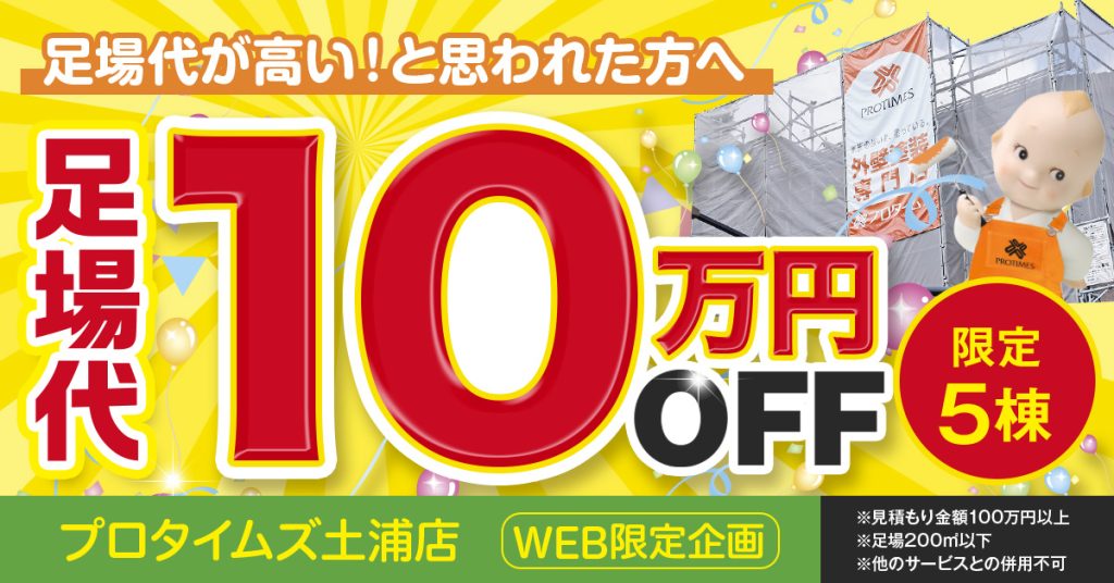 当店では現在、期間限定・WEB限定 足場代10万円割引キャンペーンを実施しております。