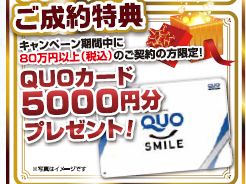 期間中にご成約いただいた方に、QUOカード5,000円分をプレゼントいたします。