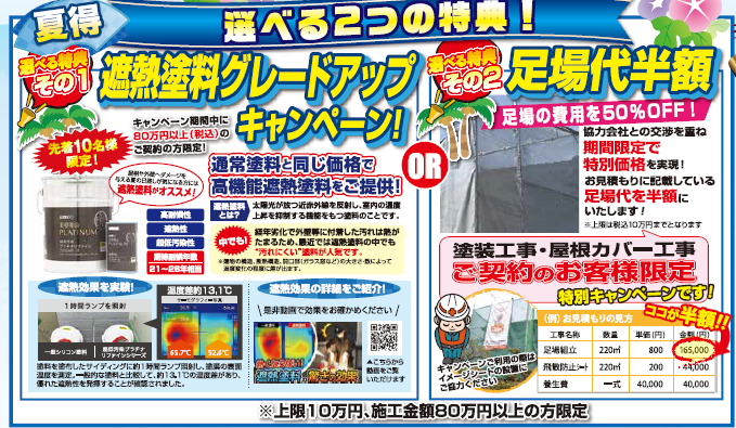 期間中のご成約で、通常塗料と同じ価格で高機能遮熱塗料をご提供!