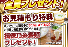 期間中にお見積りをご依頼いただいた方に、もれなく揖保乃糸素麺をプレゼントいたします。