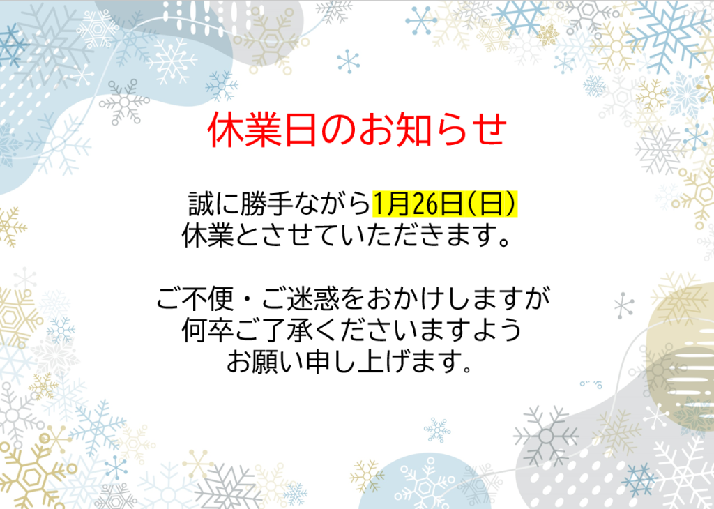 本日は、休業日のお知らせです。