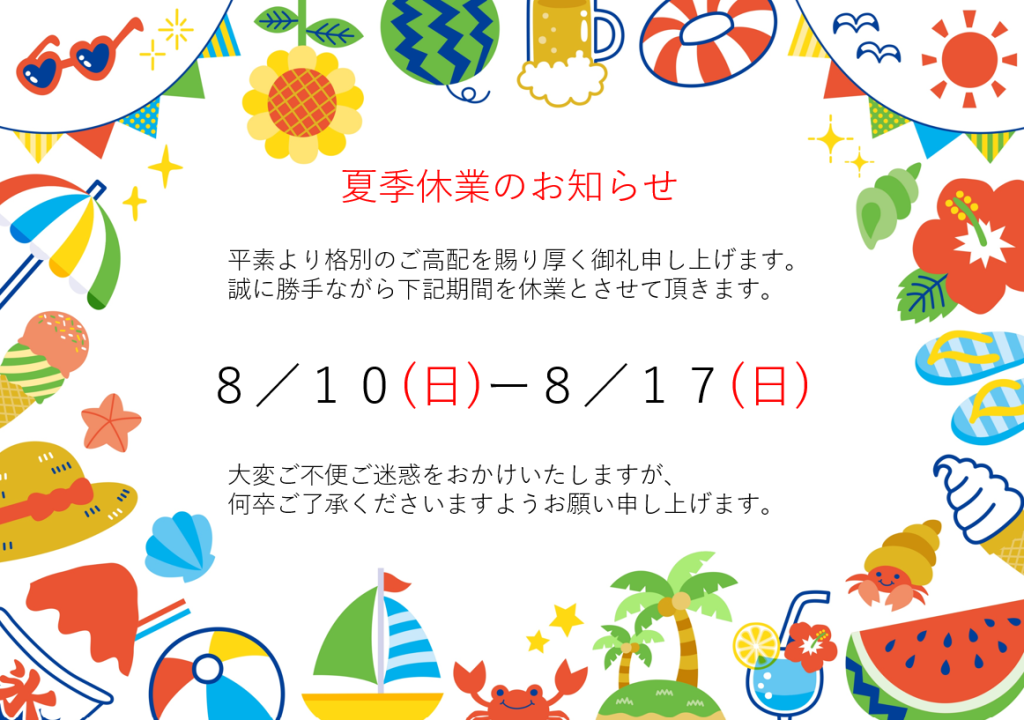 平素より格別のご高配を賜り厚く御礼申し上げます。誠に勝手ながら、以下の期間を休業日とさせて頂きます。