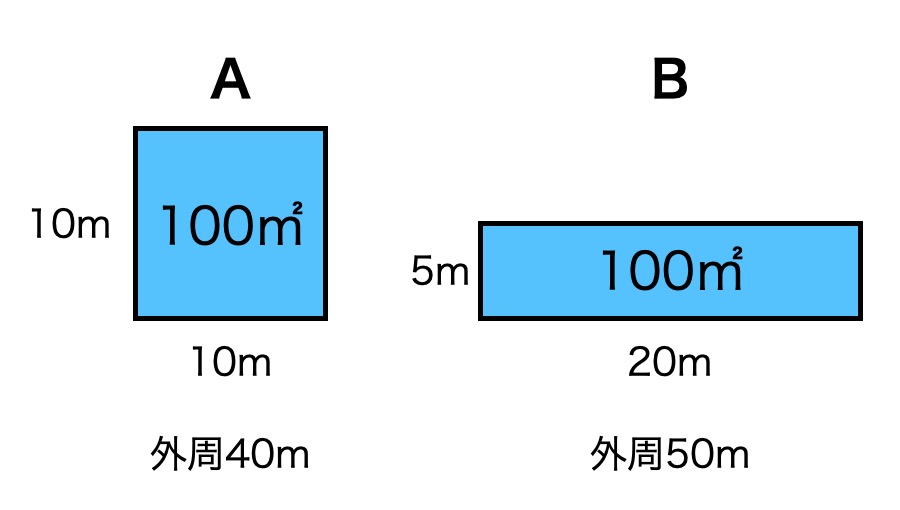 同じ30坪の家でも、50㎡も塗装面積が異なることがわかります。塗装費用が1㎡あたり3,000円だった場合、15万円もBの住宅の方が高くなります。