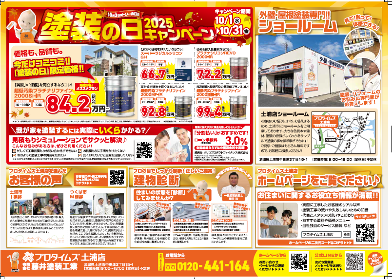 土浦市・つくば市・阿見町を中心に、外壁塗装・屋根塗装でお世話になっております、プロタイムズ土浦店です。