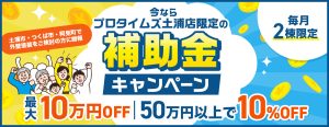 プロタイムズ土浦店では、自治体の補助金制度が利用できない方、またはタイミングが合わない方のために、独自の補助金キャンペーンを実施しています。