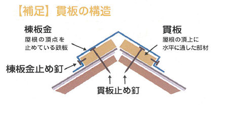 釘が抜けた結果、強風で板金が外れたり、水の浸入で貫板が腐食する危険性があります。