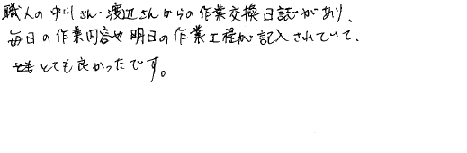 職人の中川さん、渡辺さんからの作業交換日記があり、