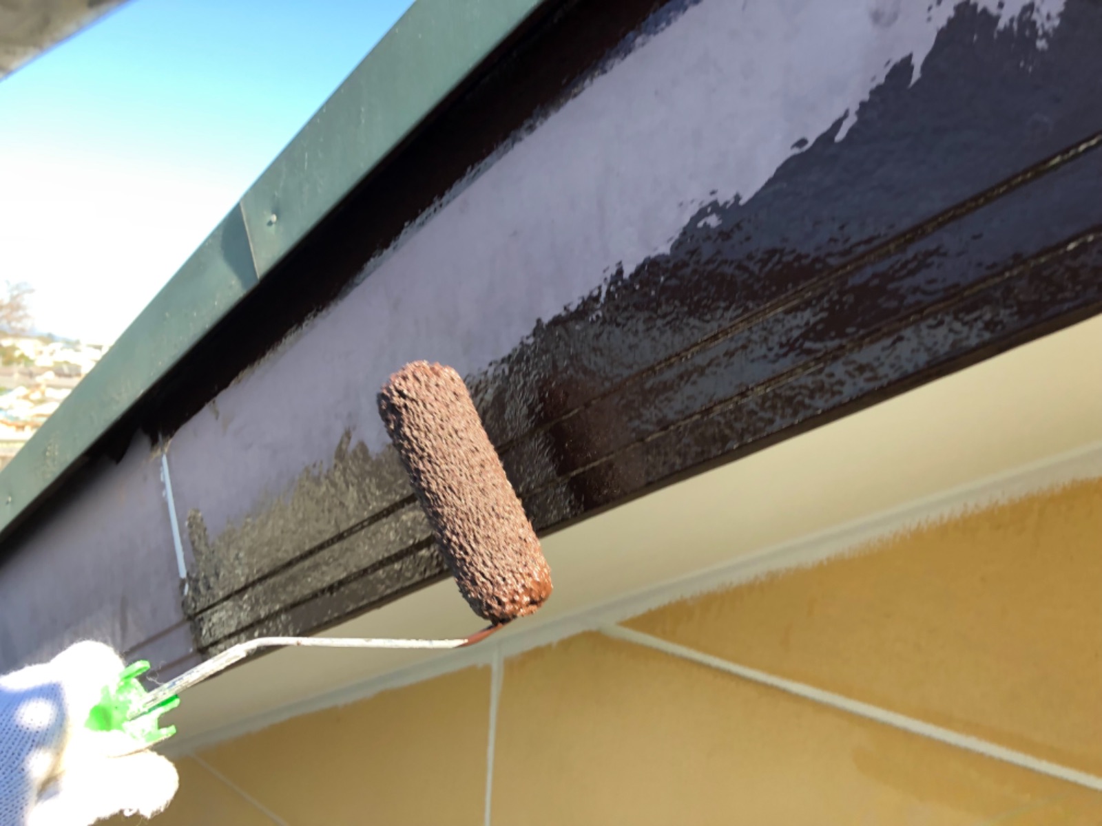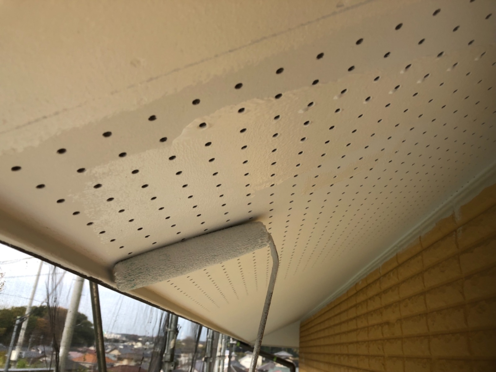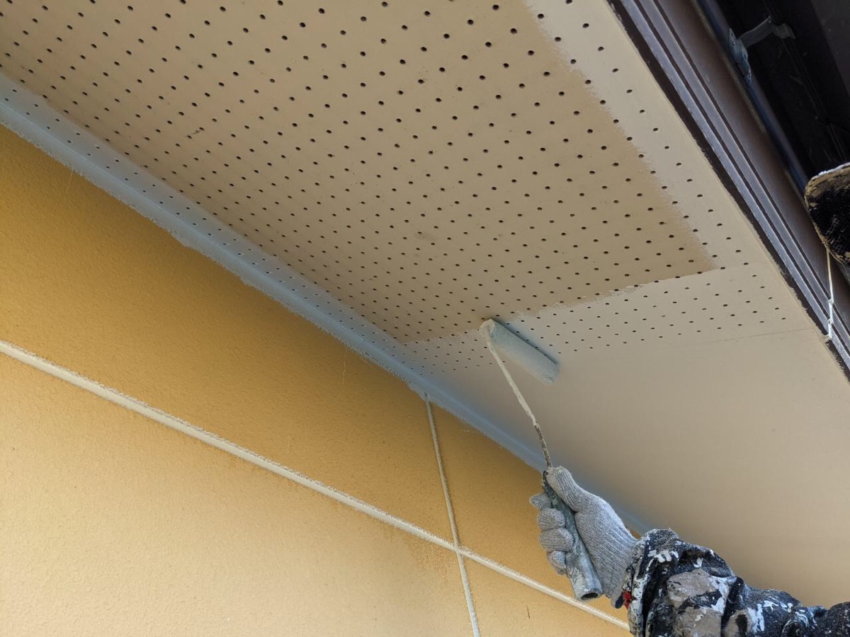 軒天の上塗りです。