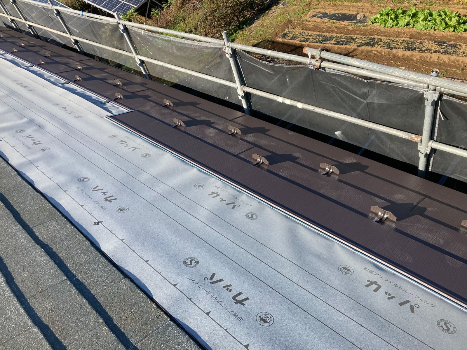 下葺材を敷き込みます。内部への雨水の侵入を防ぎます。