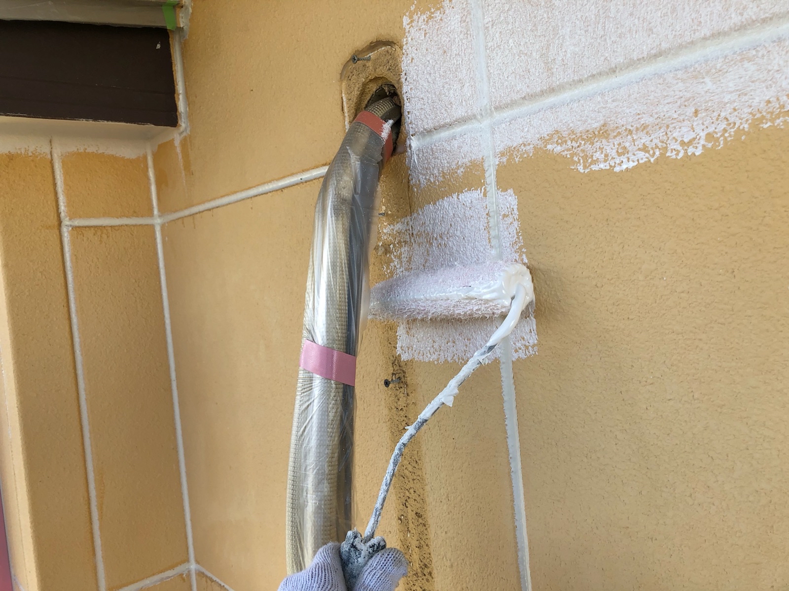 ALC外壁のため、増し打ちの施工となります。