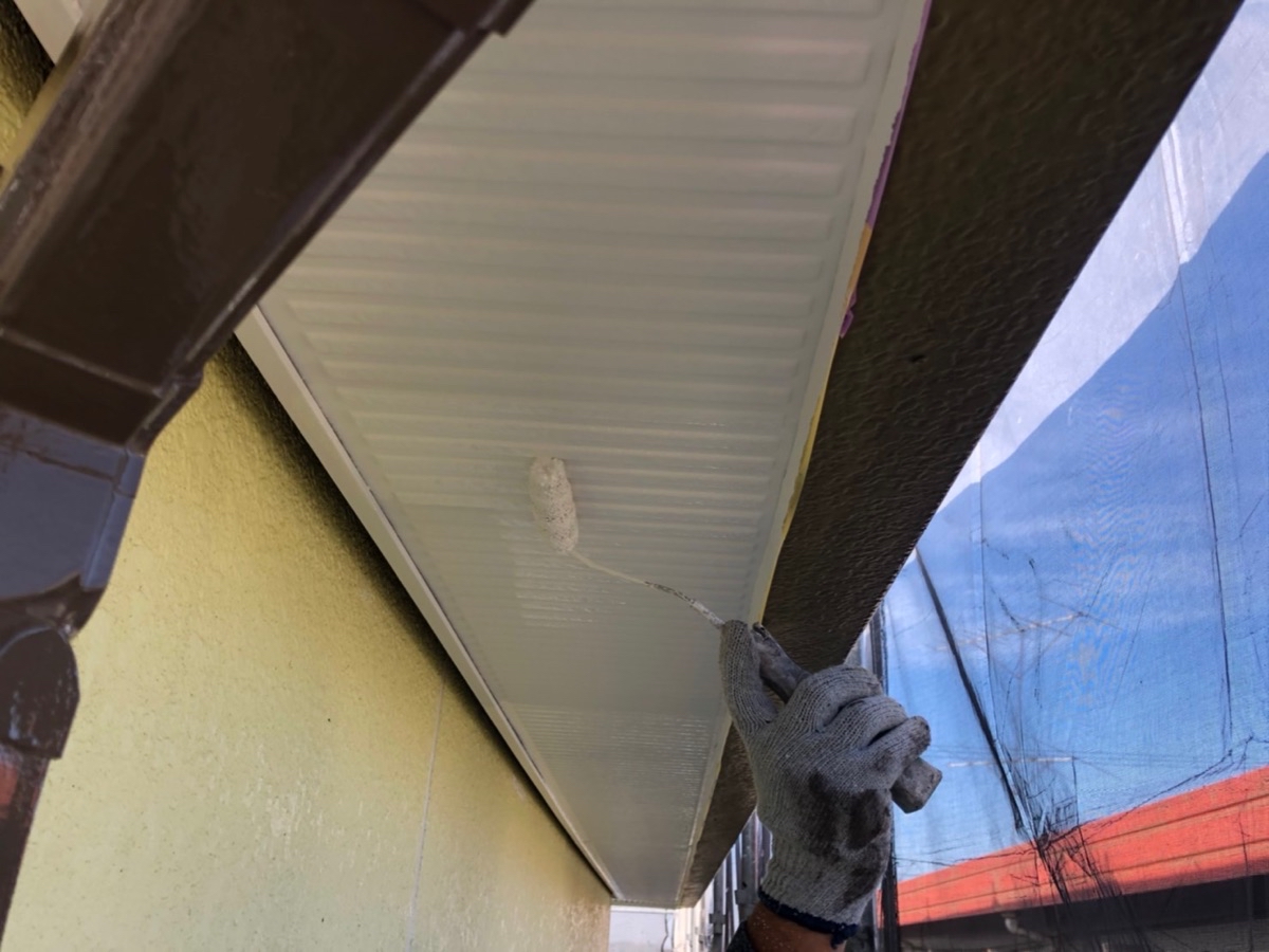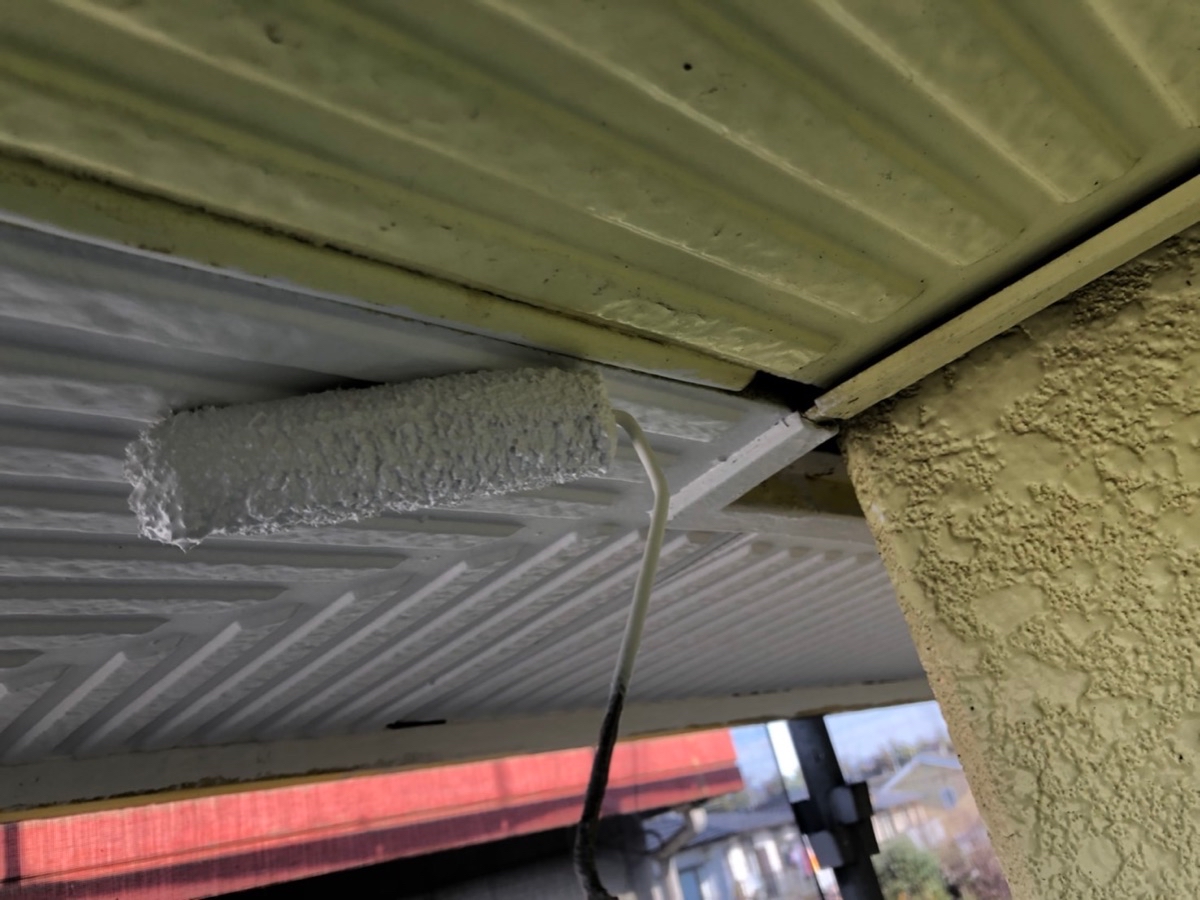 軒天の下塗りです。