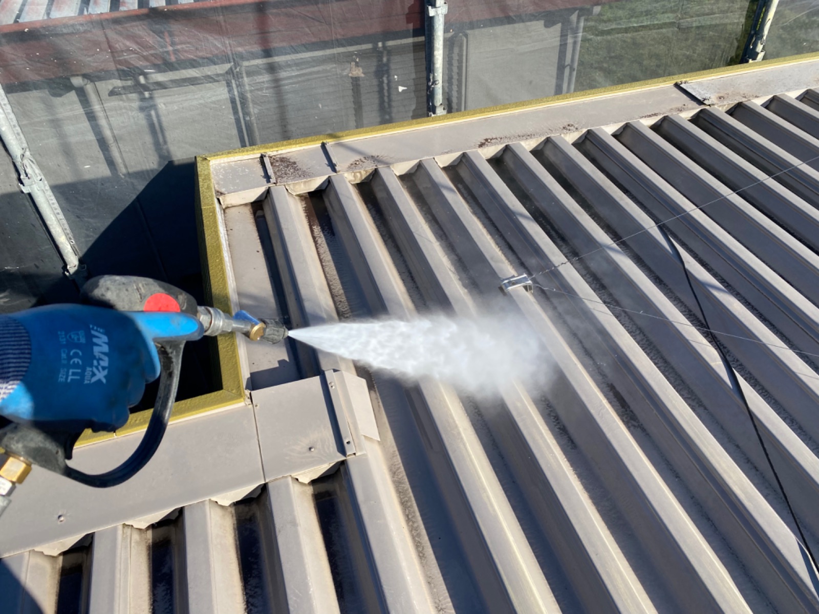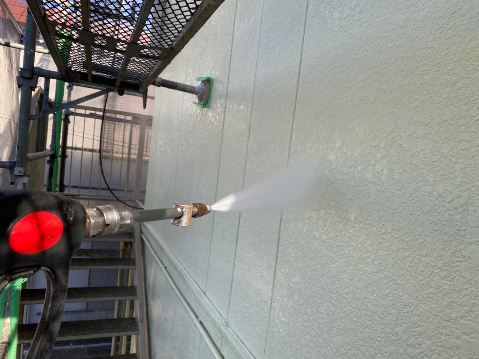 塗料と建材の密着を強くする為に、外壁や屋根に付着した埃・苔・汚れなどを隅々まで洗浄します。