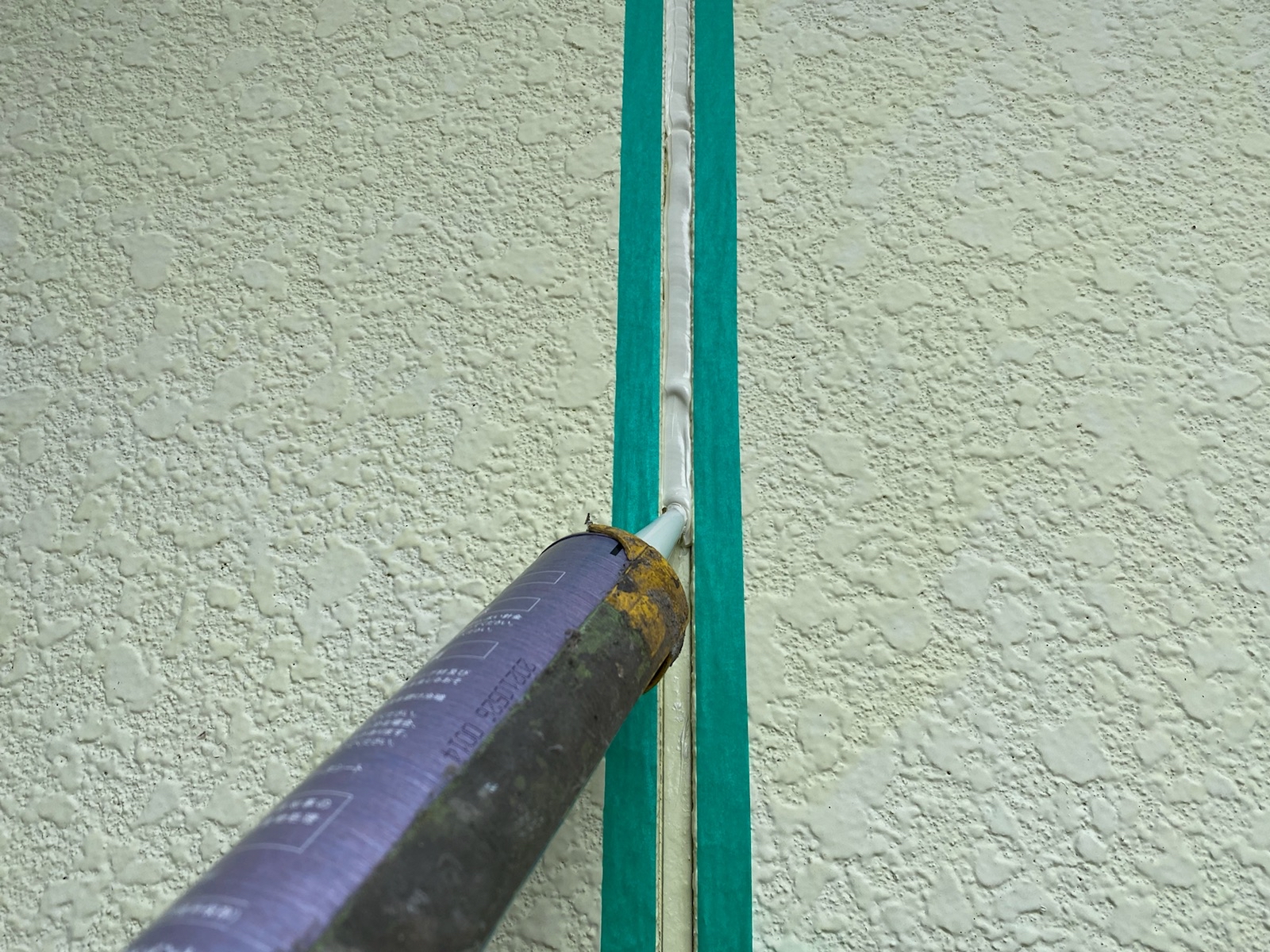 コーキング材の充填です。目地内部に空洞ができないように多めに注入します。