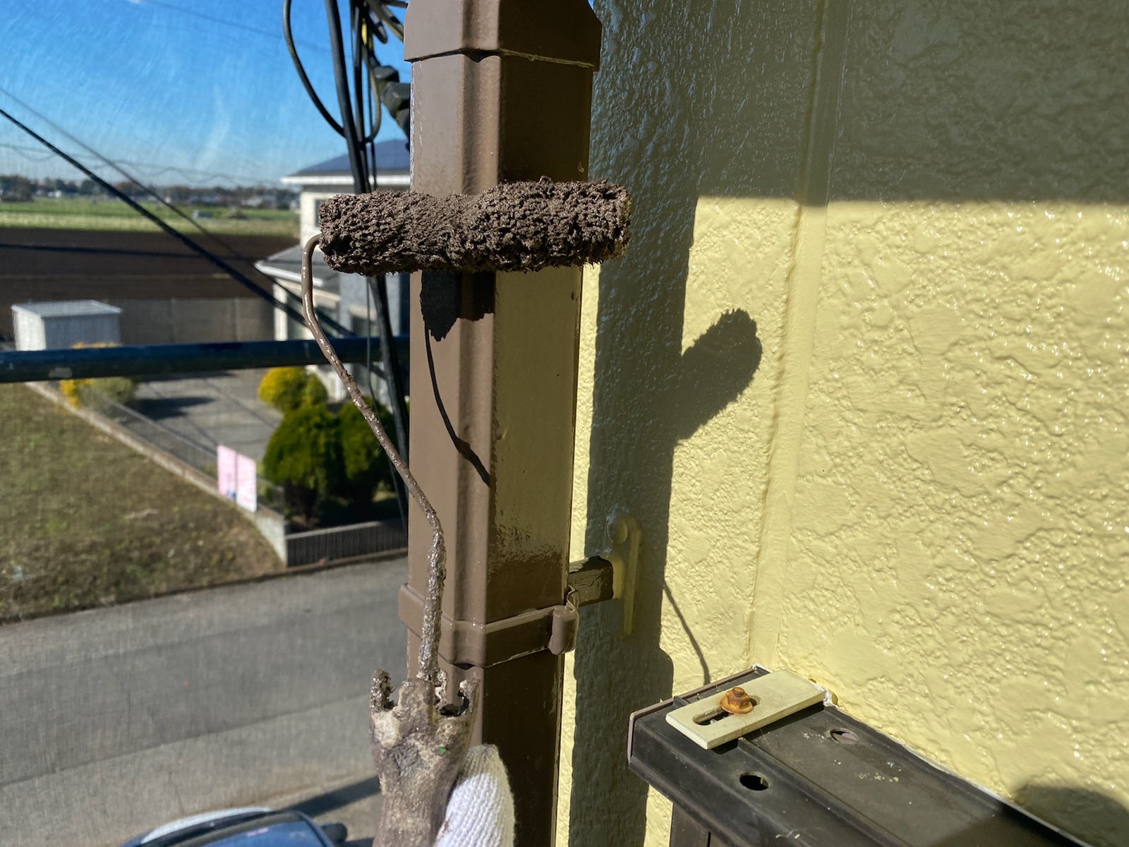 雨樋の下塗りです。