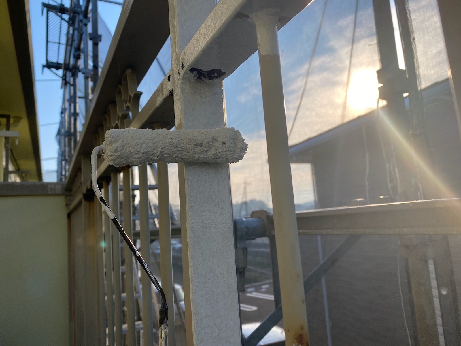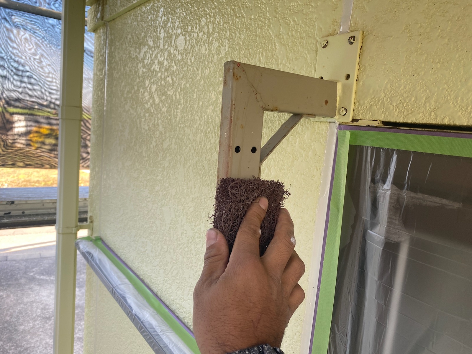 古い塗膜や錆びを除去します。非常に重要になる下地処理の一つです。