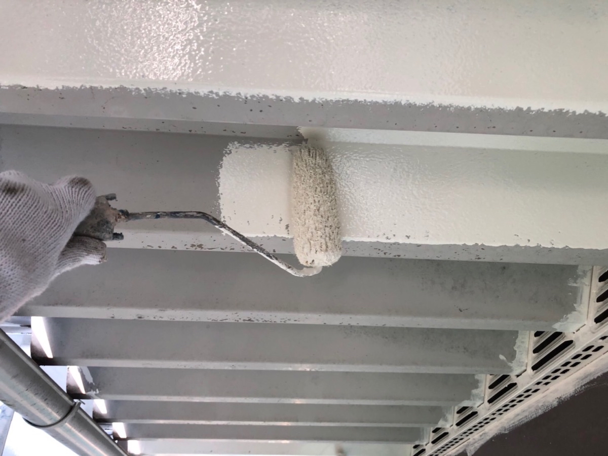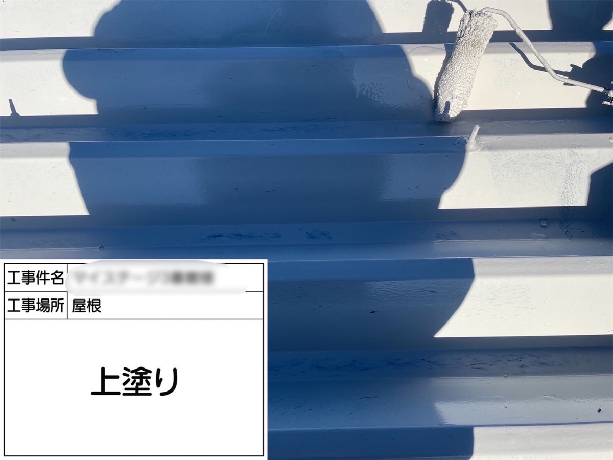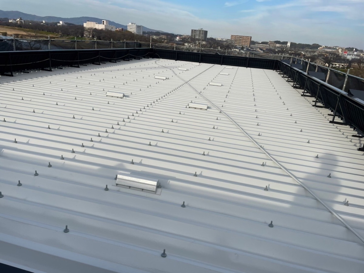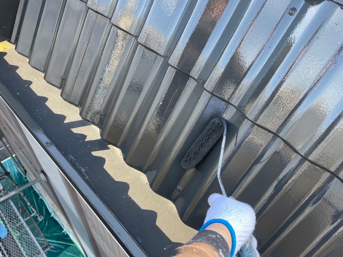4Fフッ素の優れた耐候性を有し、屋根の色彩・光沢を長期間保つ遮熱塗料の「スーパーシャネツサーモF」で施工しました。