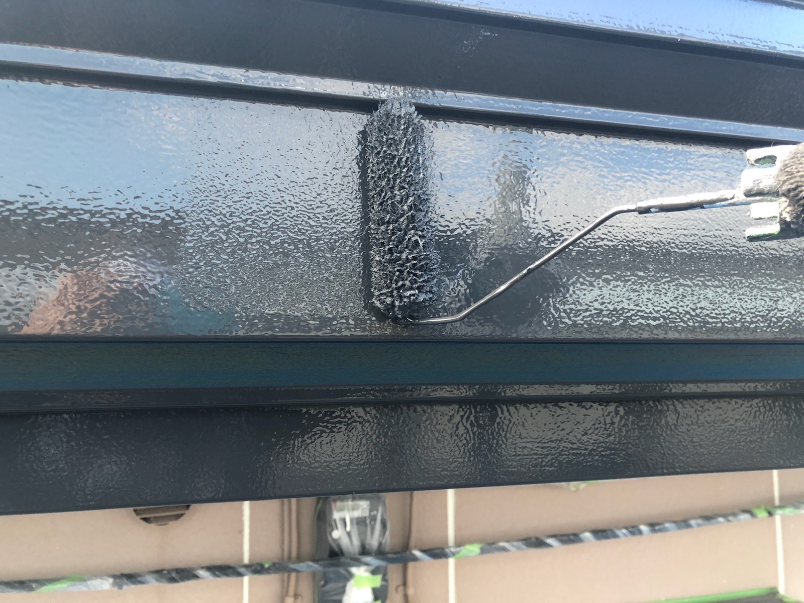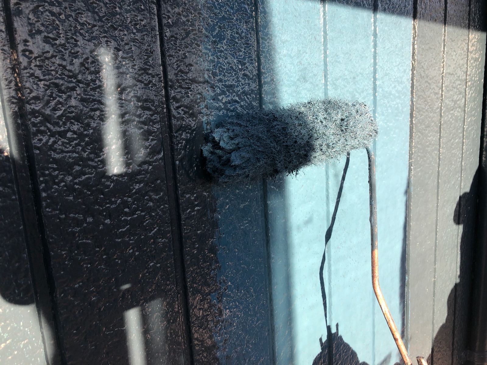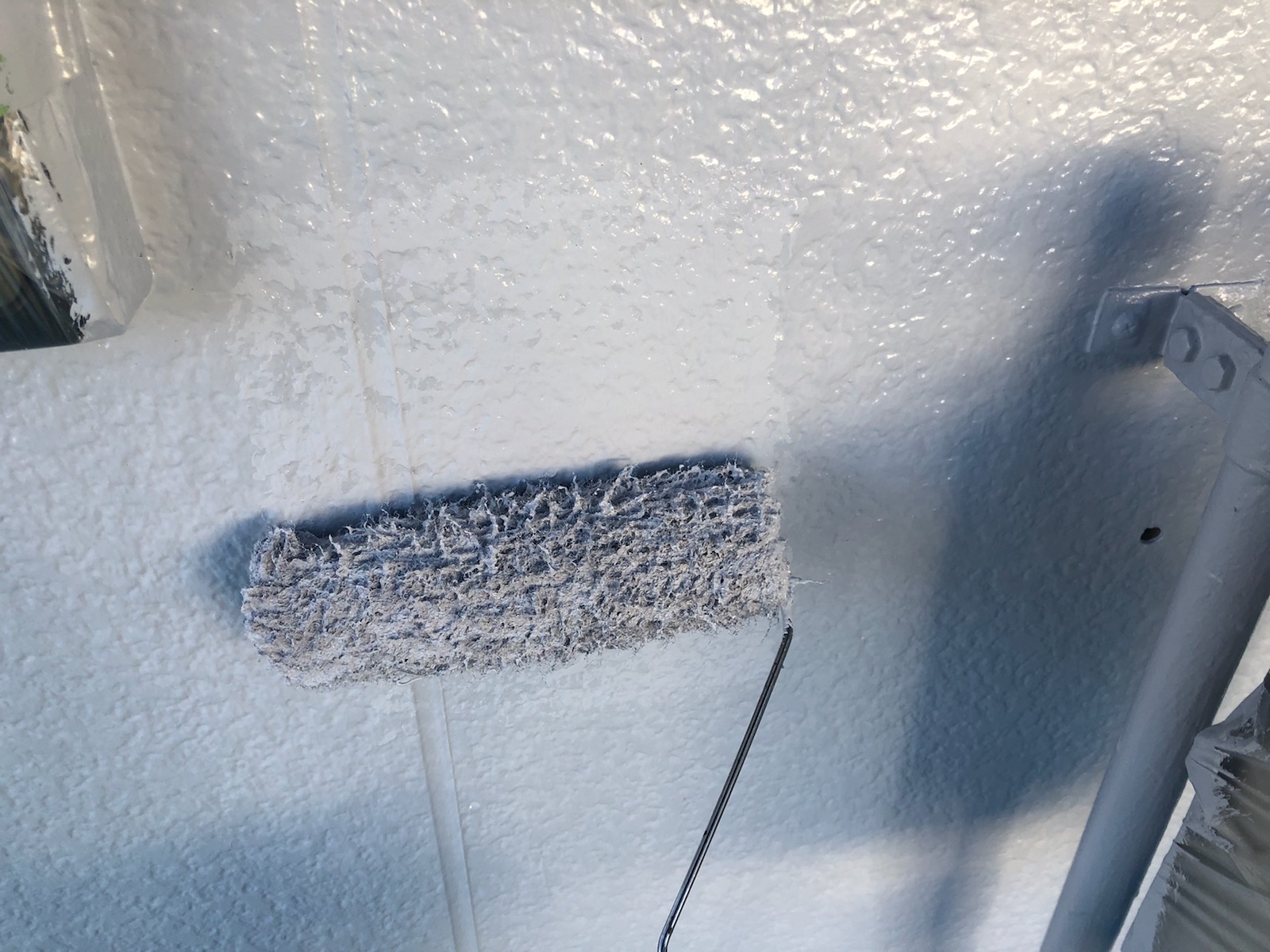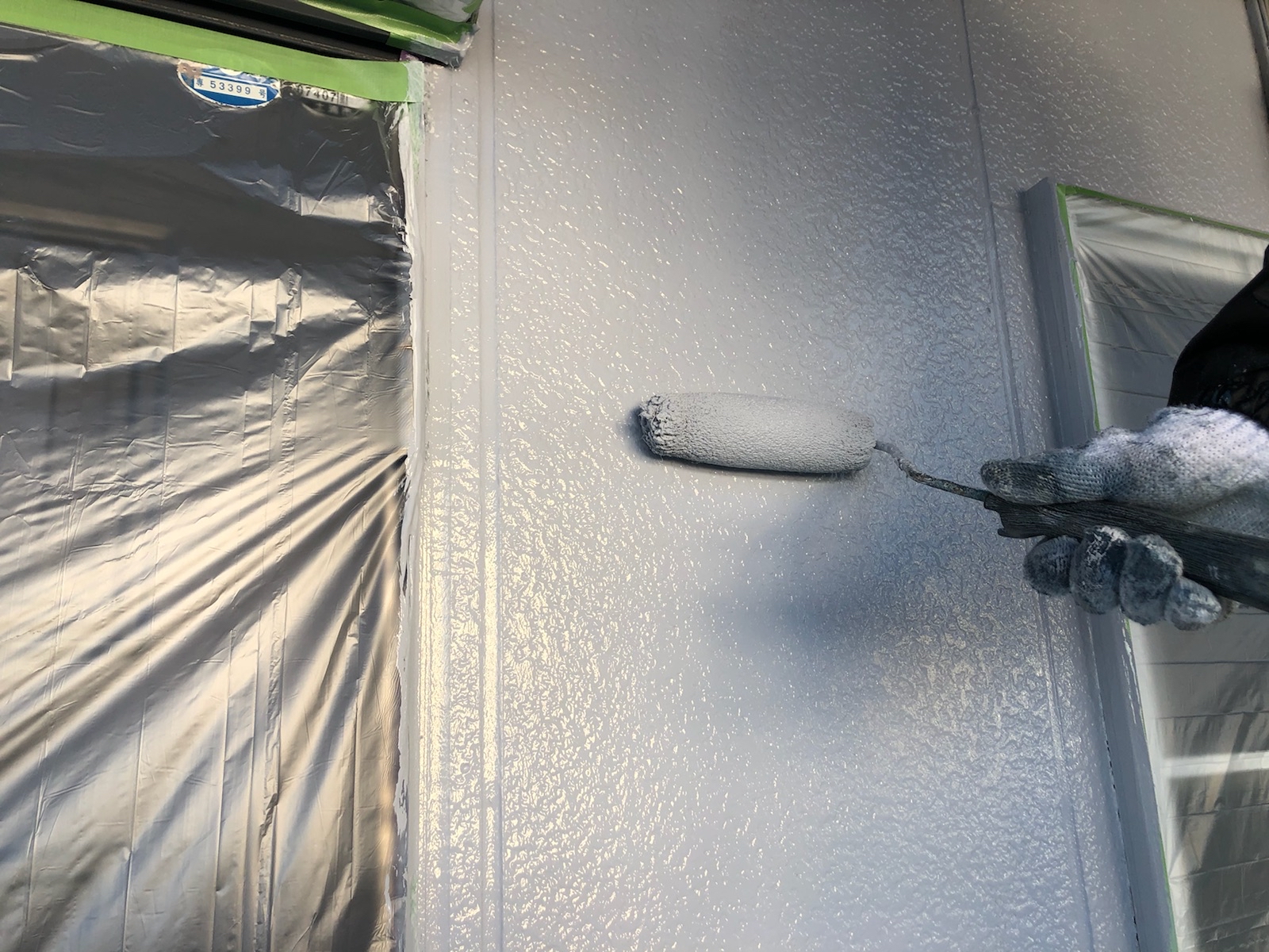 中塗りです。塗料の性能を最大限に発揮する為、基準塗布量や乾燥時間を遵守します。