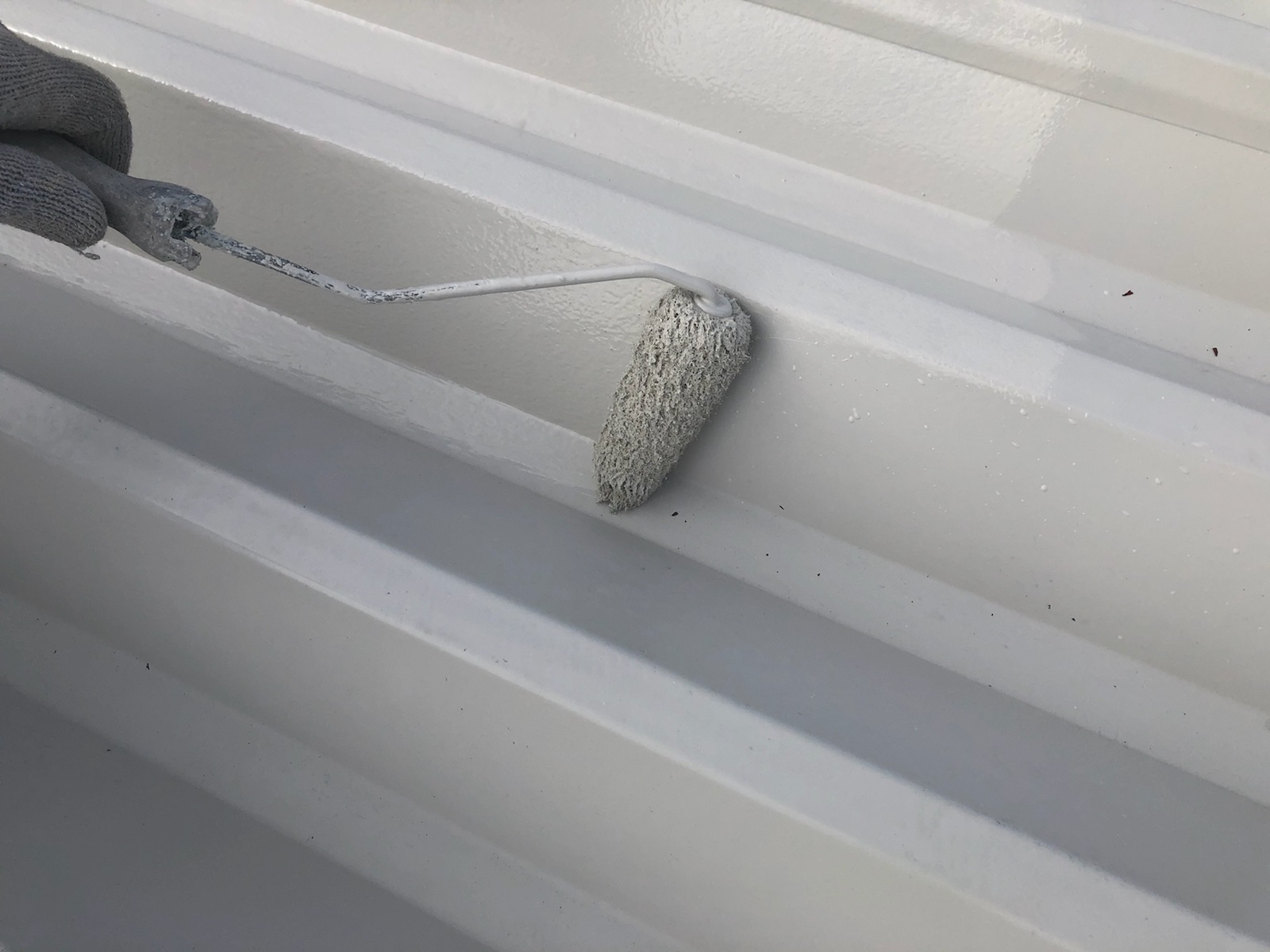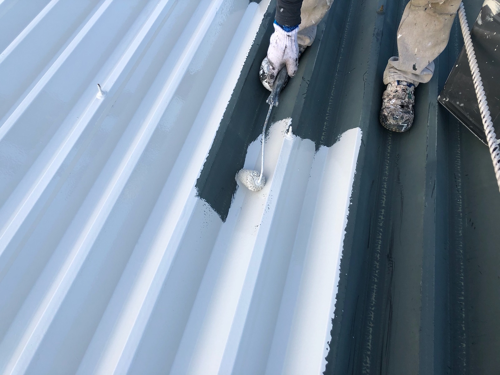 4Fフッ素の優れた耐候性を有し、屋根の色彩・光沢を長期間保つ遮熱塗料「スーパーシャネツサーモF」で施工しました。