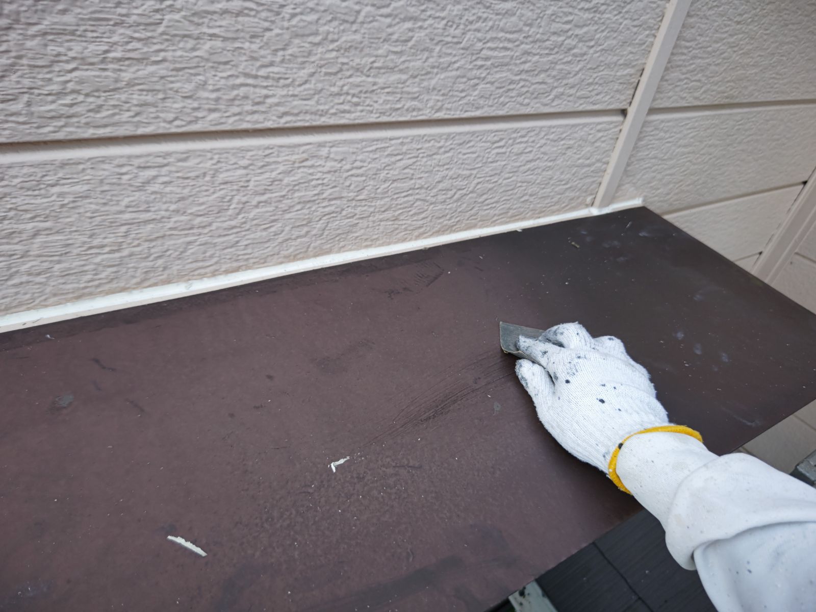 ケレン作業です。古い塗膜や錆びを除去する作業になります。非常に重要になる下地処理の一つです。