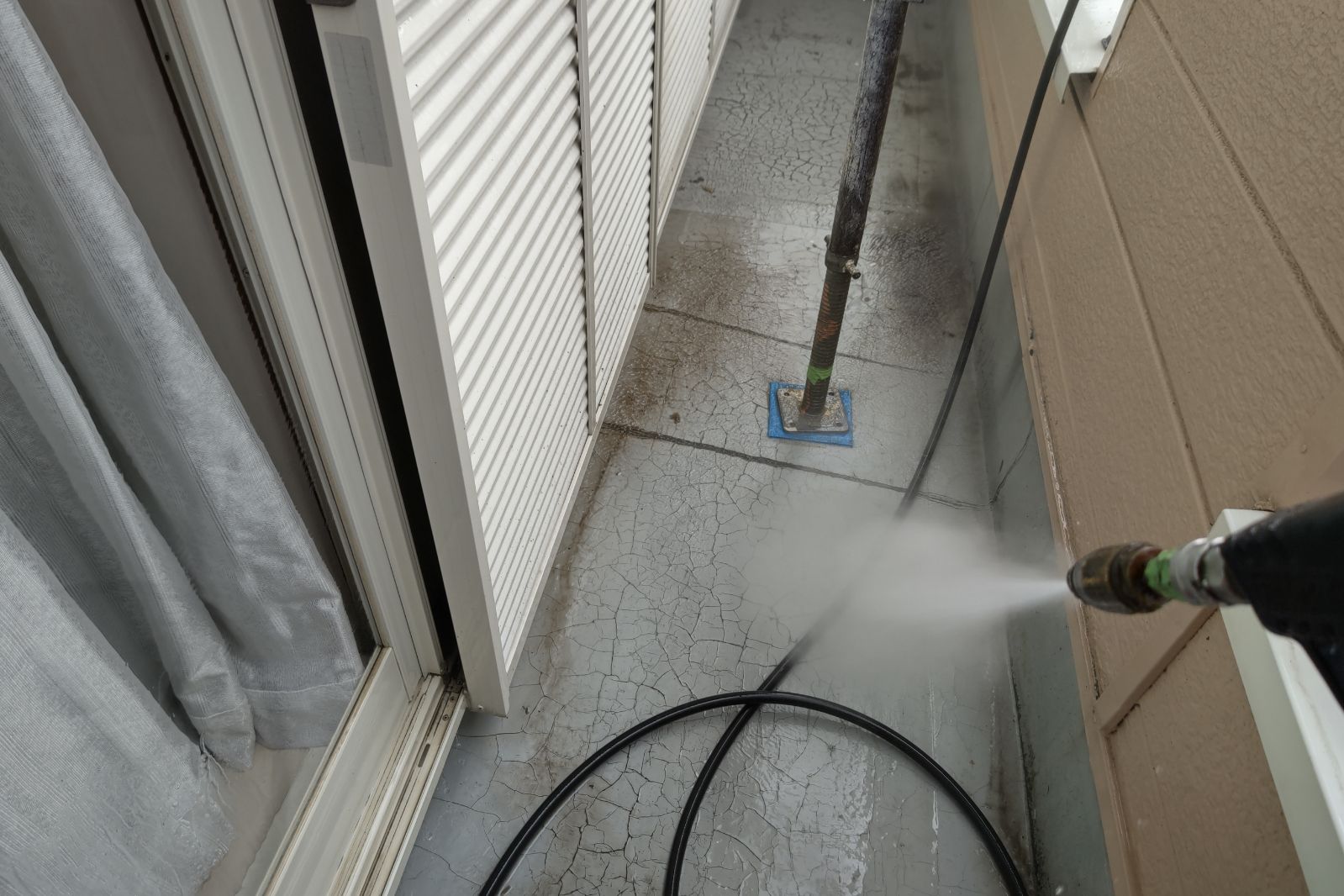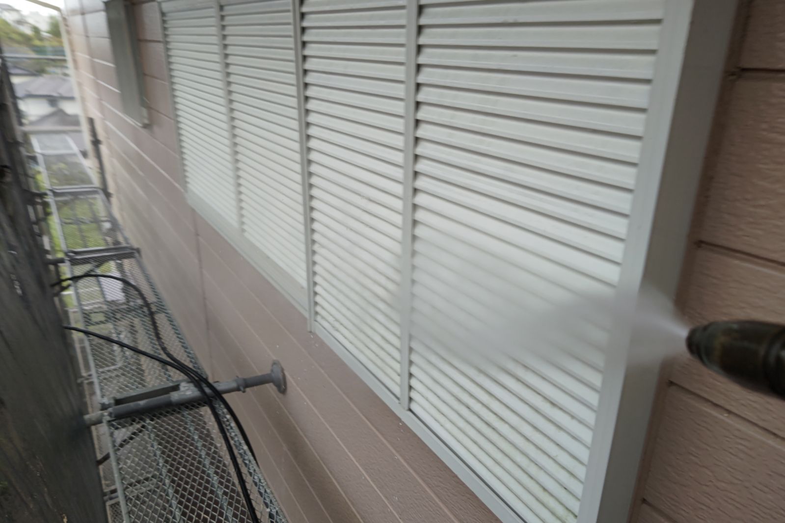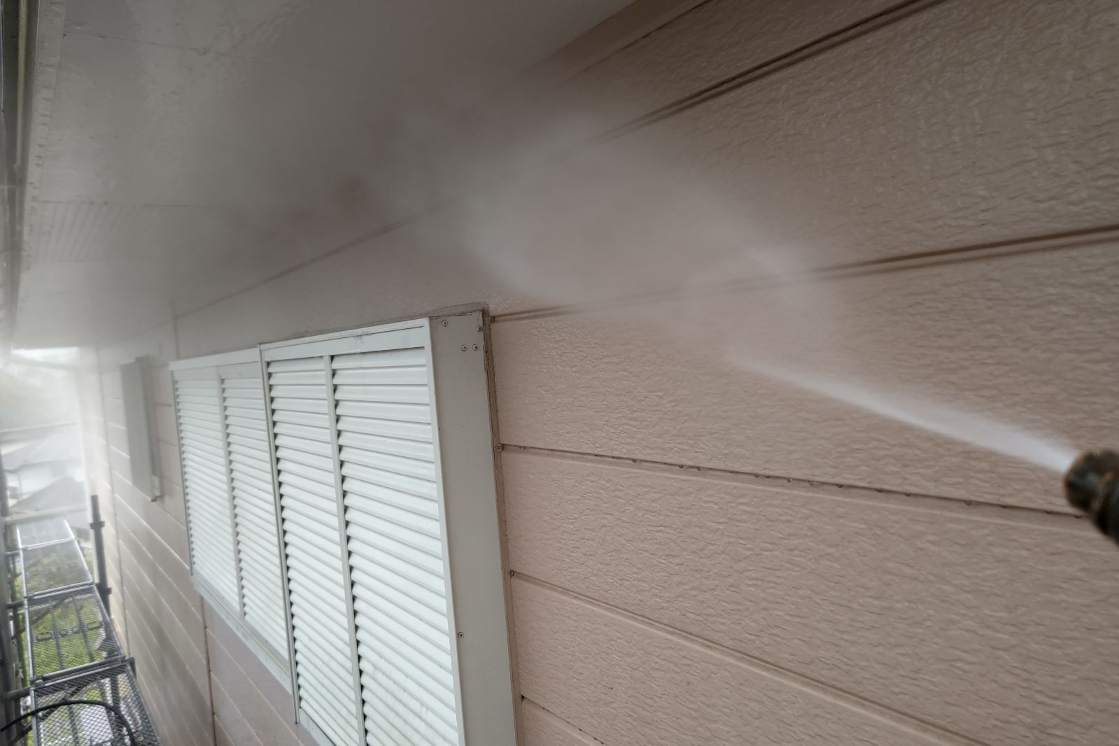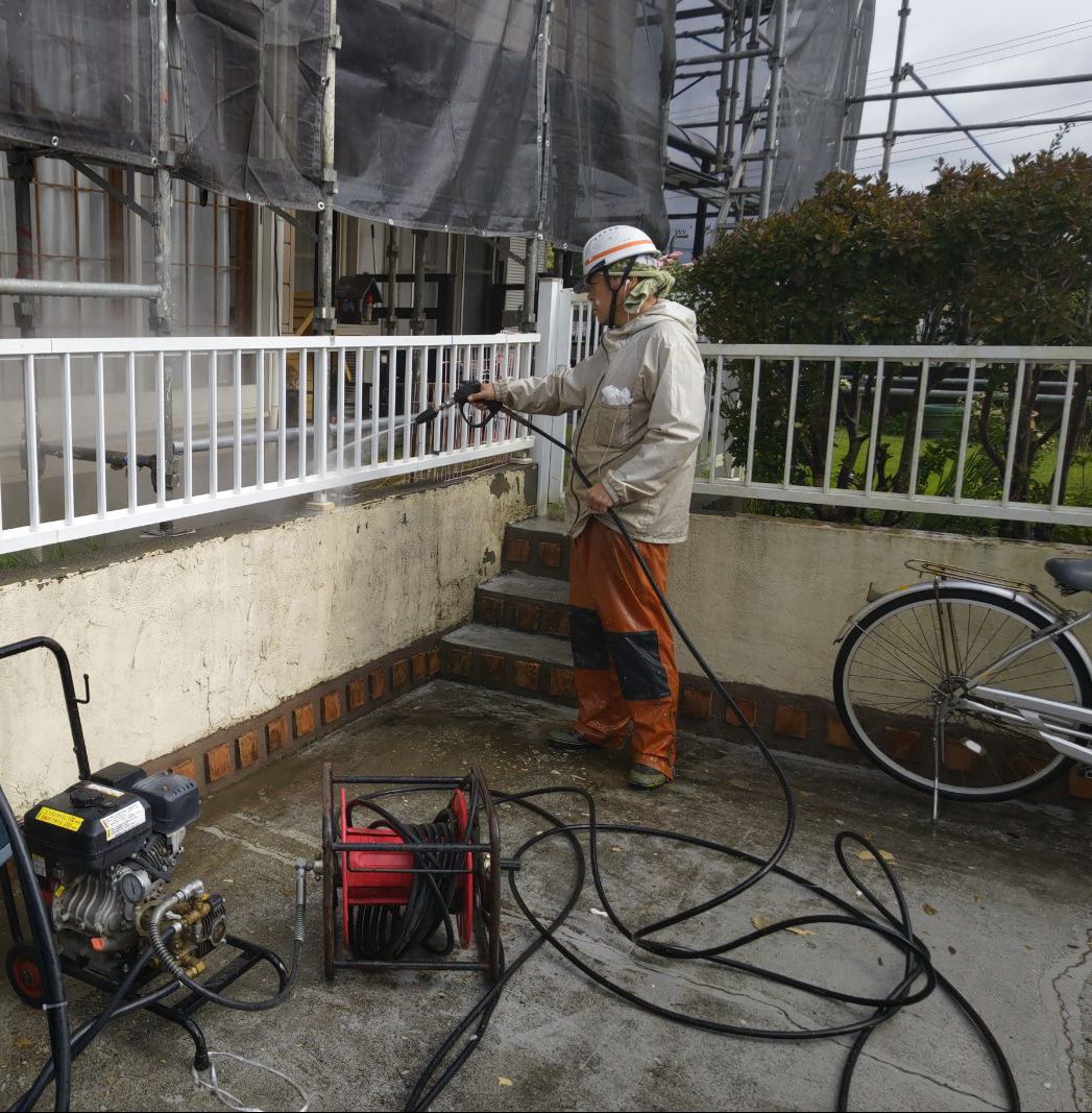 塗料と建材の密着を強くするために、外壁や屋根に付着した埃・苔・汚れなど隅々まで洗浄します。