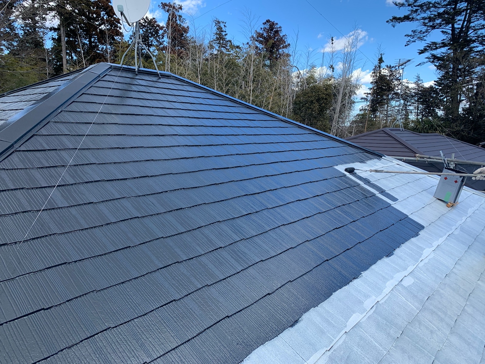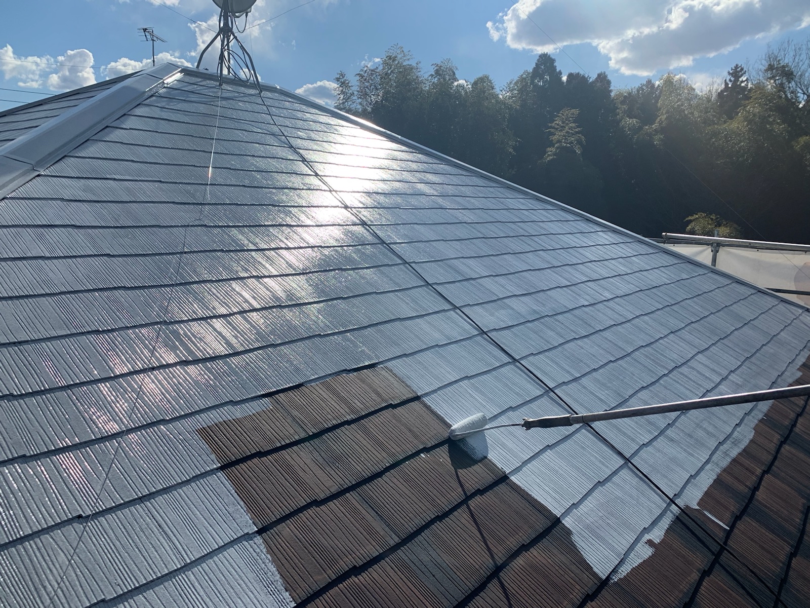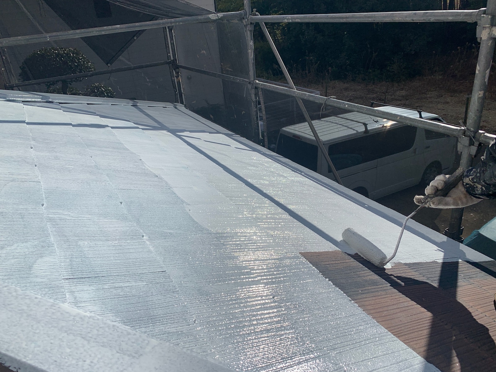 この作業をしないと、屋根の縁が塗料でくっついて屋根に降った雨水が正常に流れていかず内部に留まり、雨漏りする可能性があります。