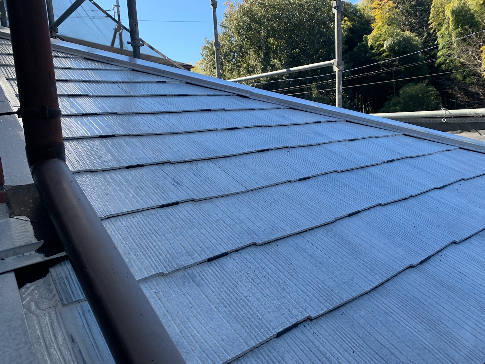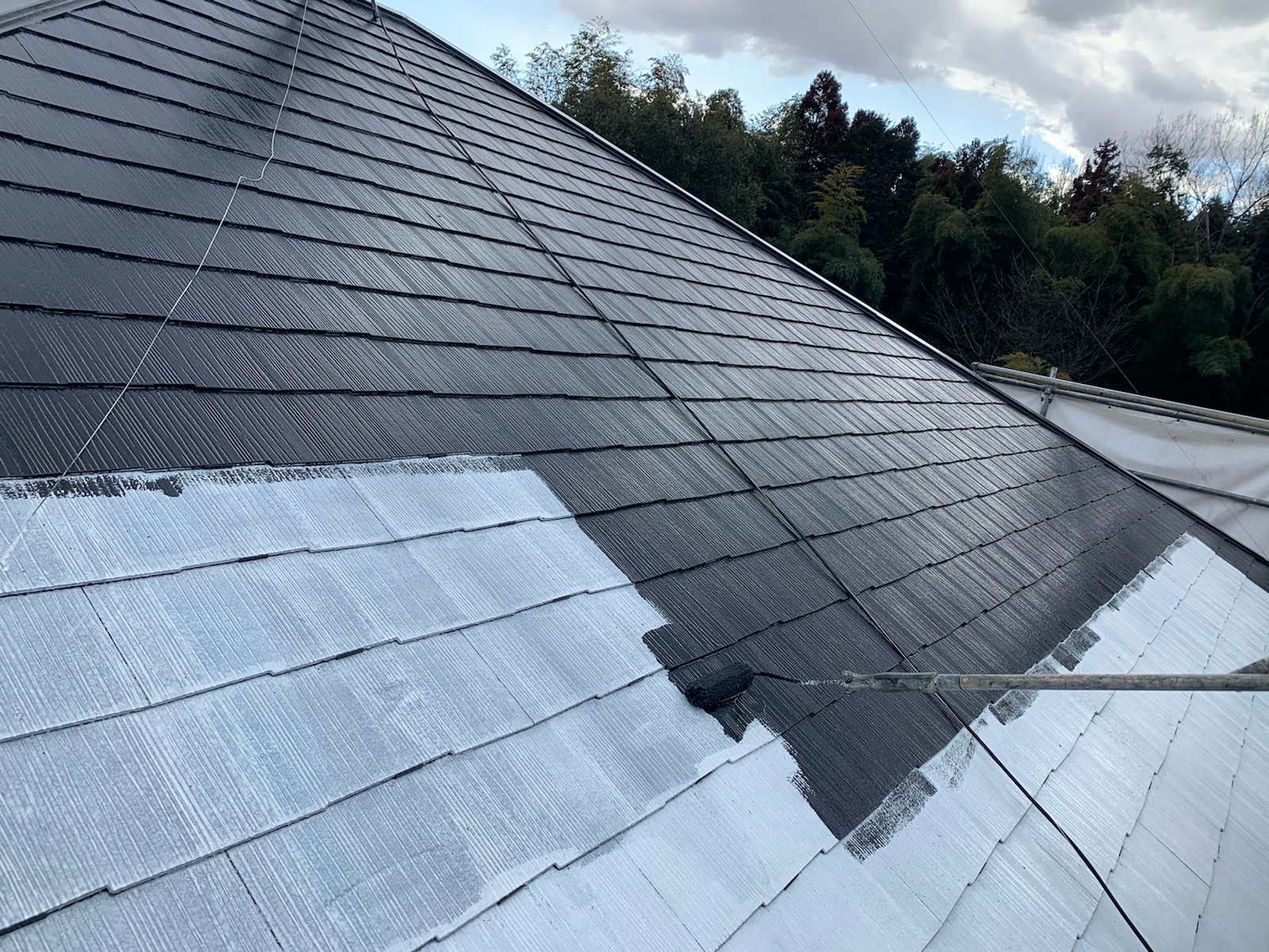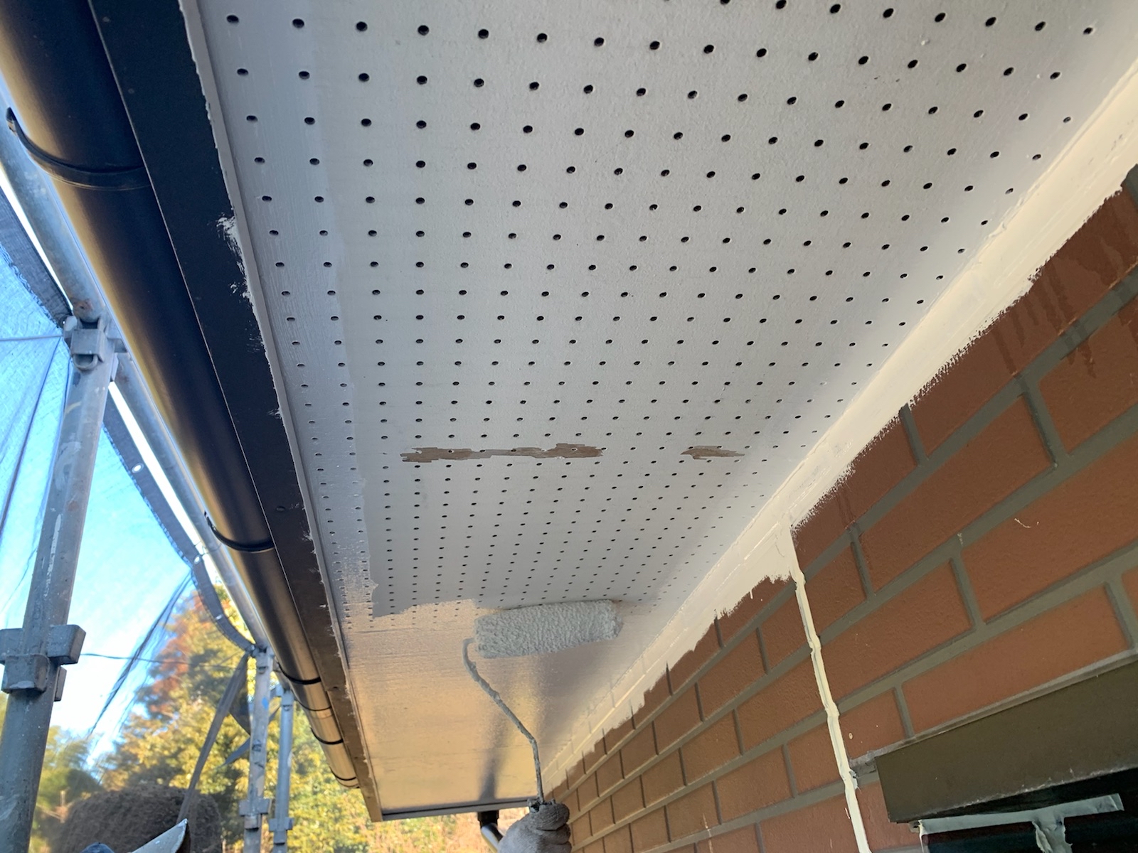 この作業をしないと、屋根の縁が塗料でくっついて屋根に降った雨水が正常に流れていかず内部に留まり、雨漏りする可能性があります。