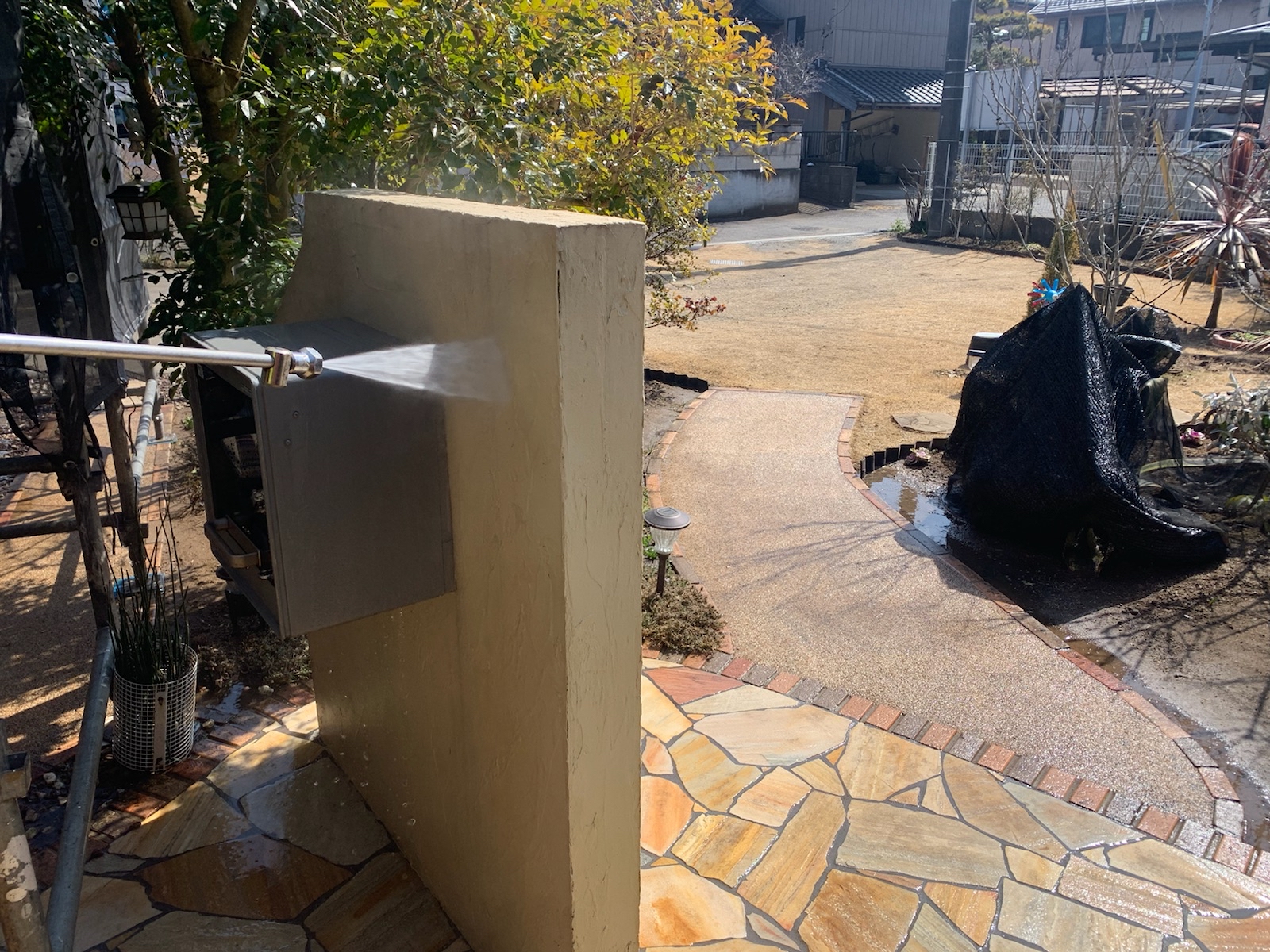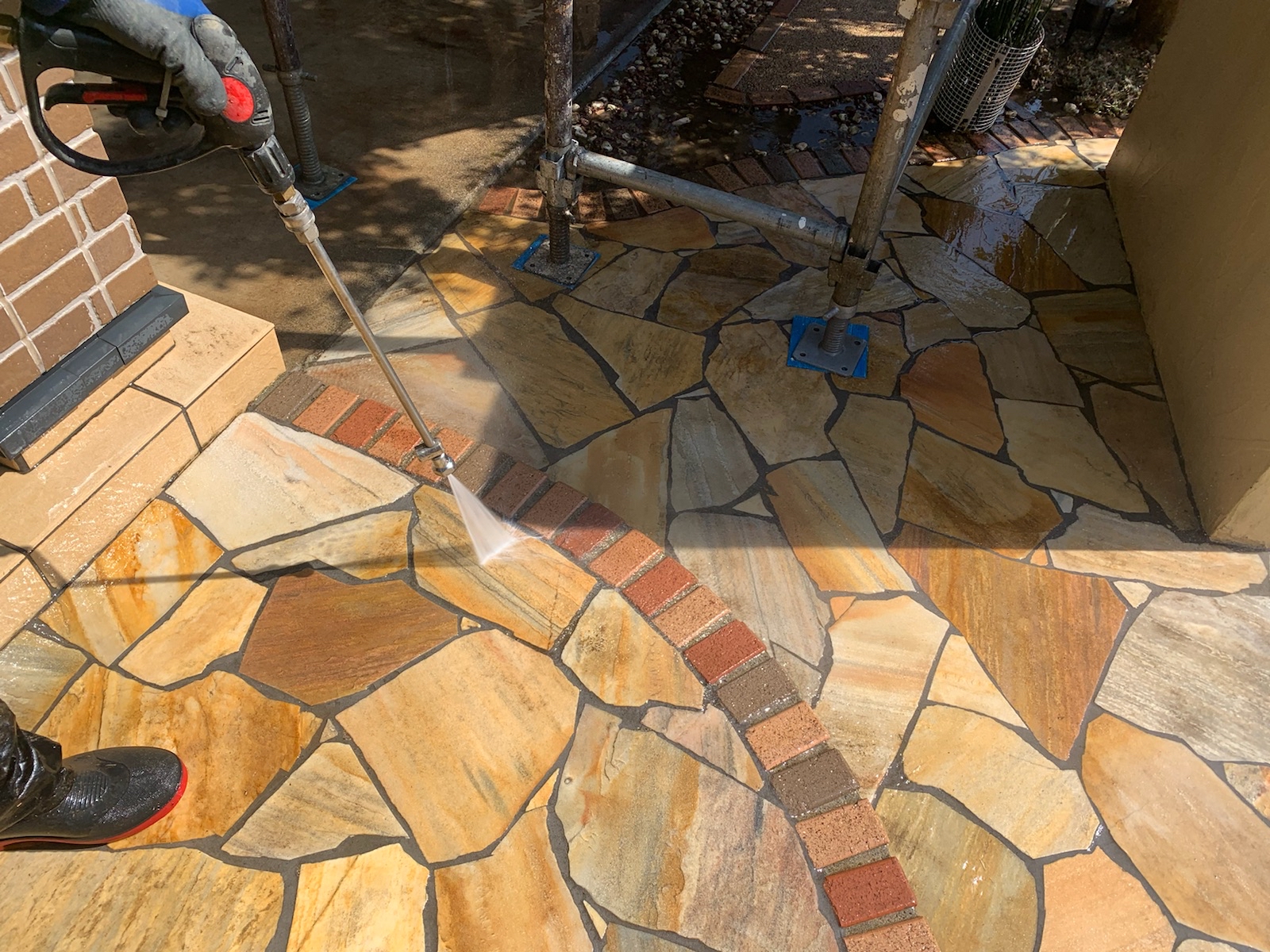 塗料と建材の密着を強くするために、外壁や屋根に付着した埃・苔・汚れなどを隅々まで洗浄します。