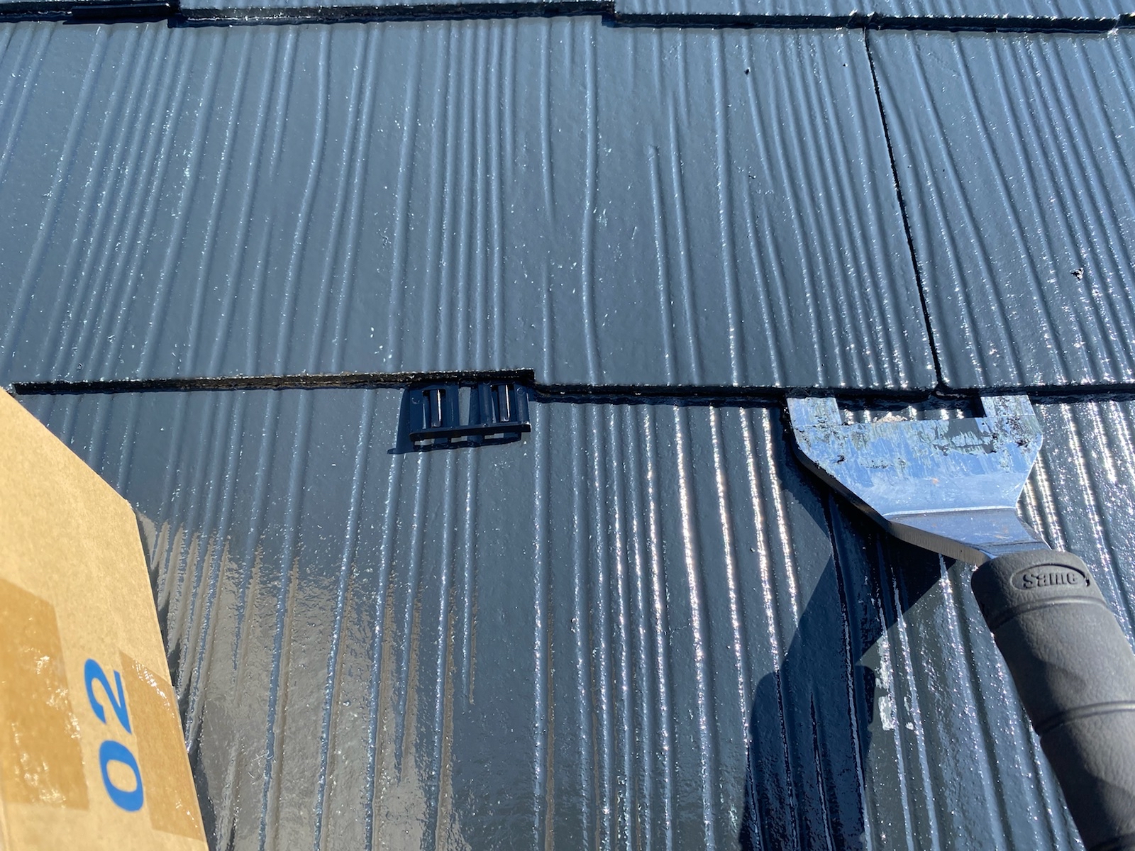 タスペーサーの取付けです。屋根同士がくっつくのを防ぐ縁切りをタスぺーサーで行います。