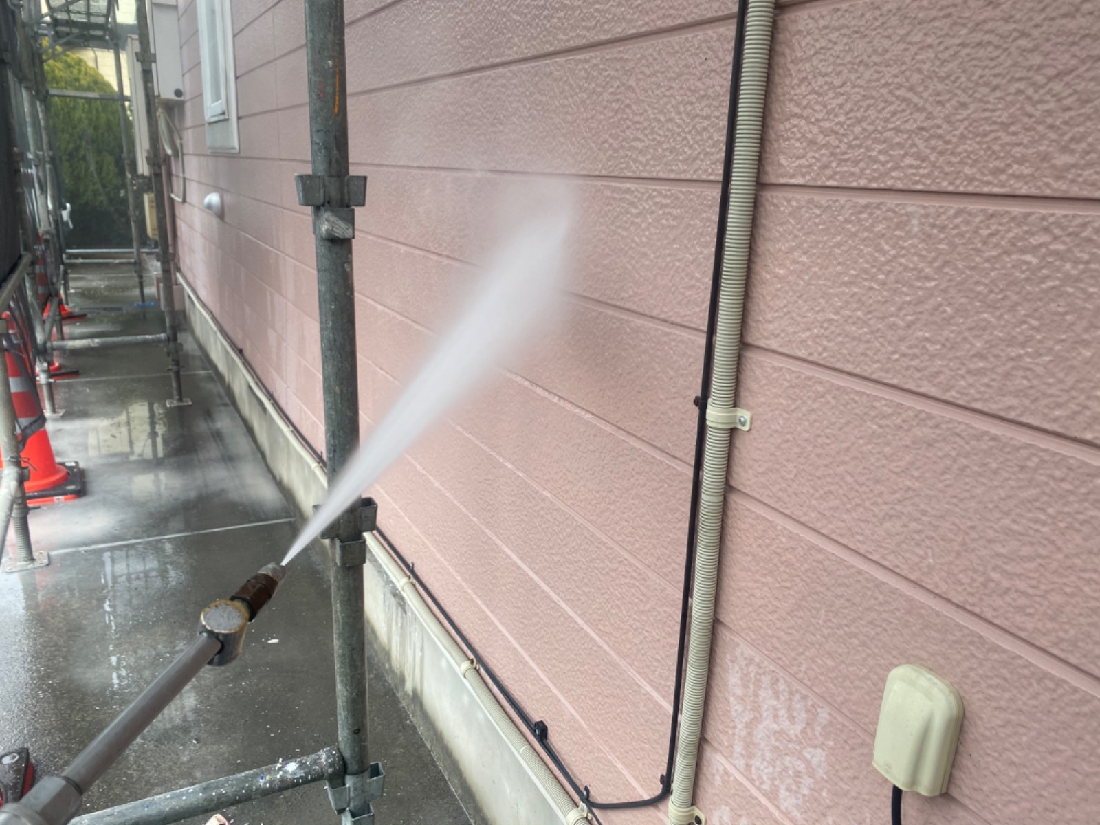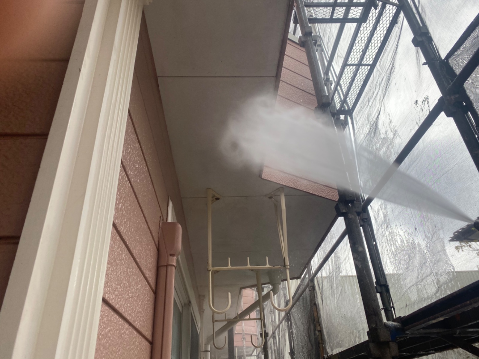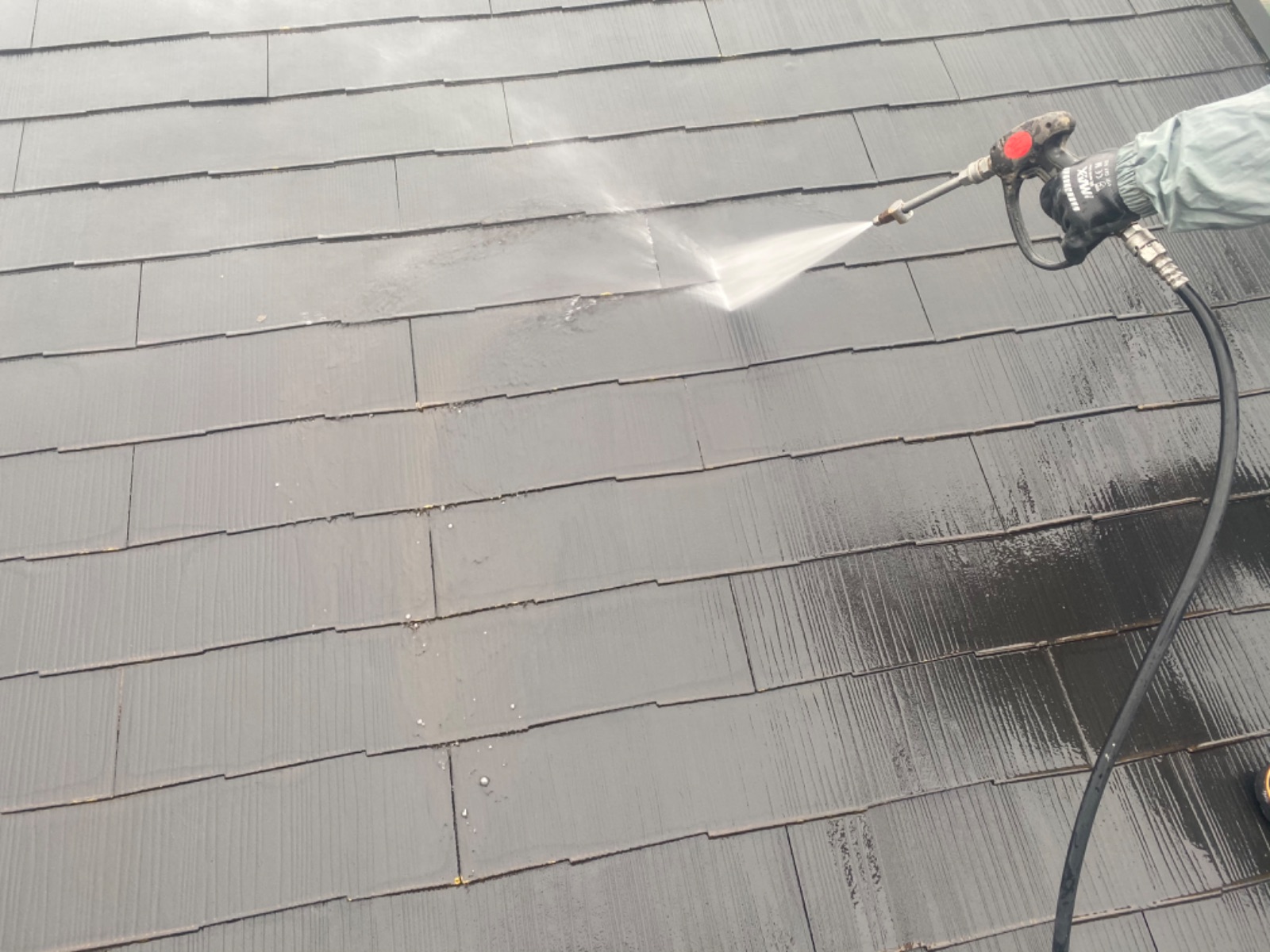 塗料と建材の密着を強くするために、外壁や屋根に付着した埃・苔・汚れなどを隅々まで洗浄します。