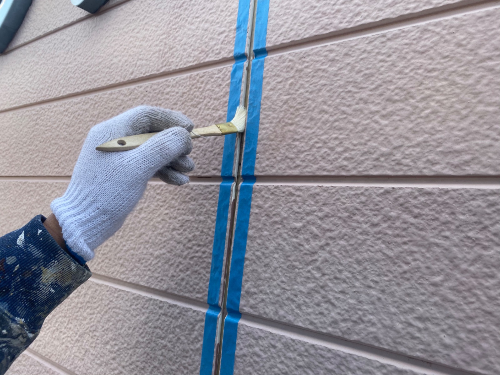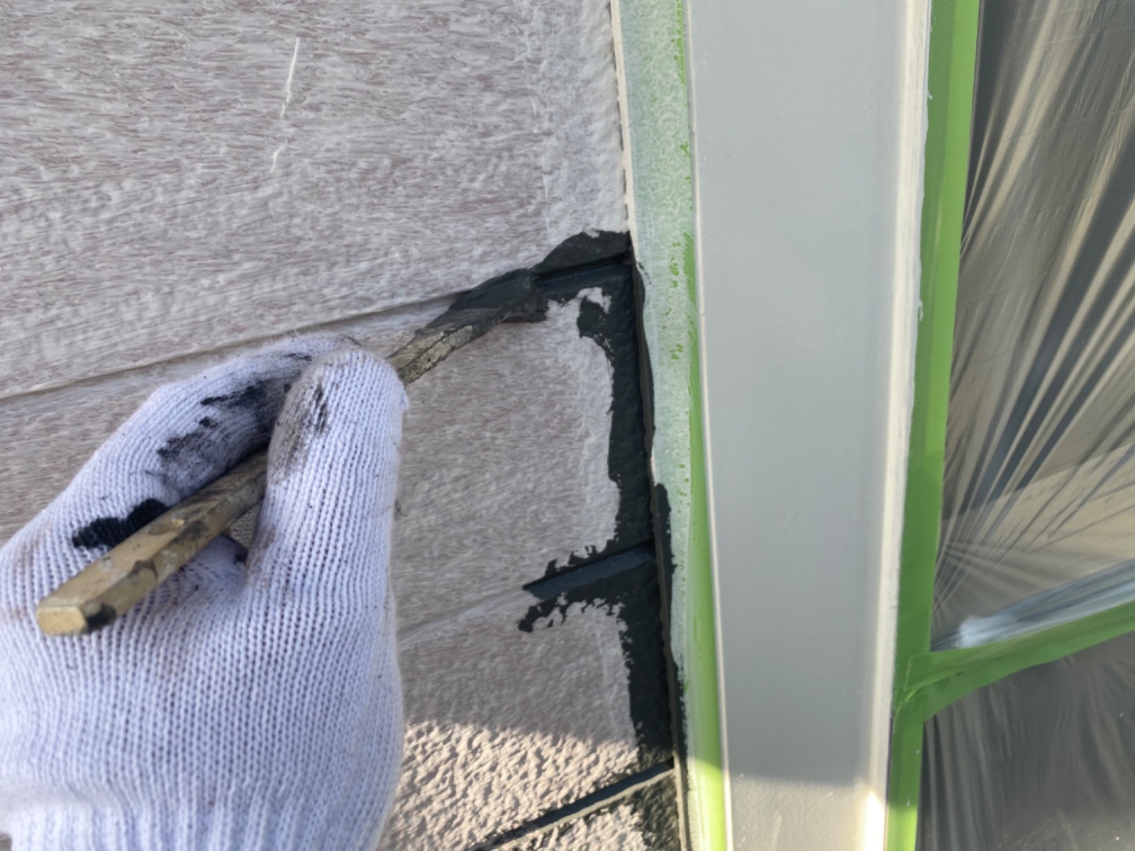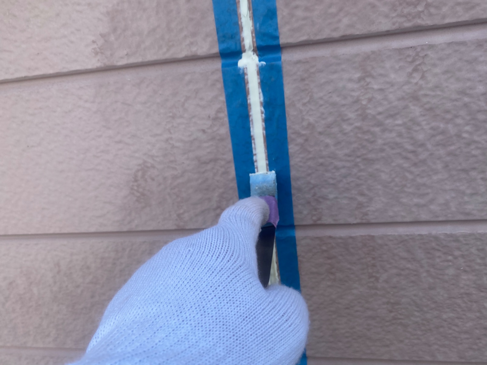 既存のコーキングを撤去します。撤去後は、目地に残った埃を刷毛で綺麗にとります。