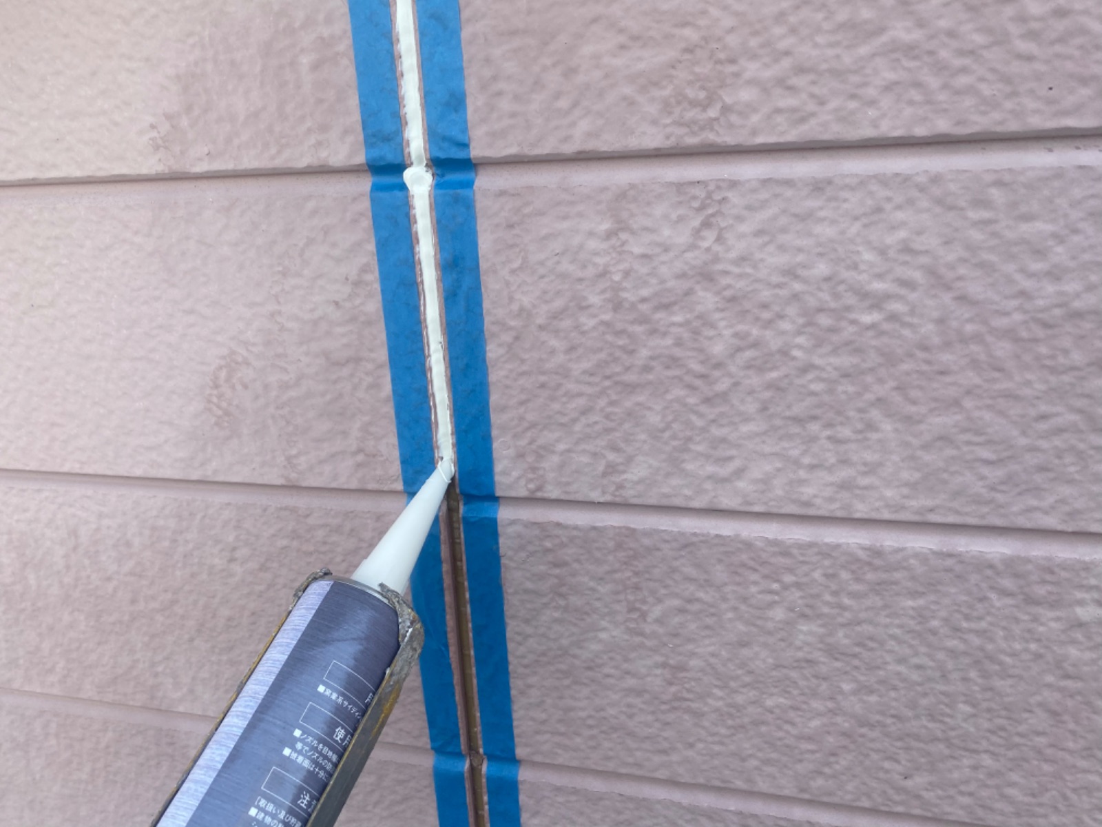 コーキング材の充填です。目地内部に空洞ができないように多めに注入していきます。