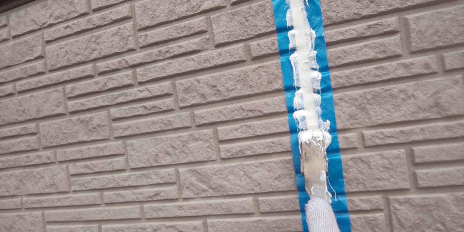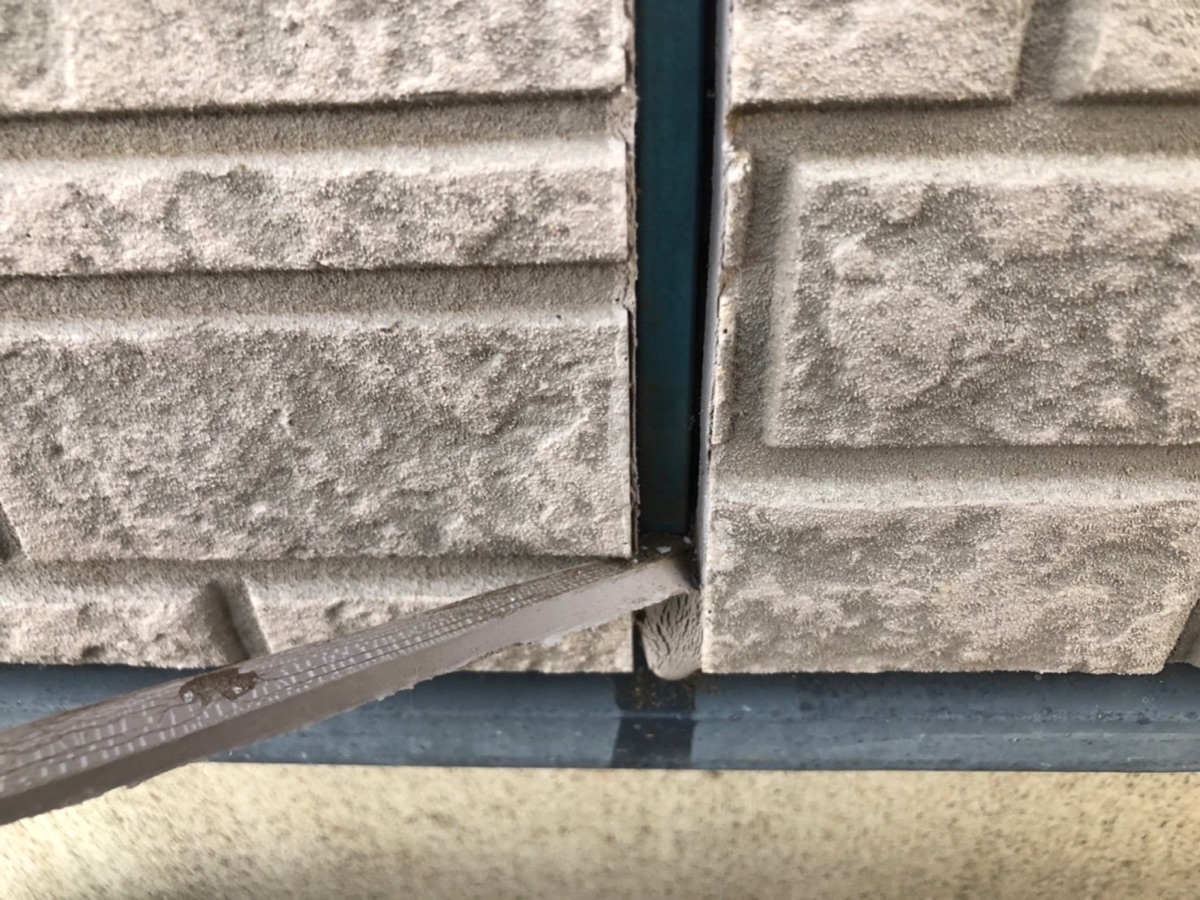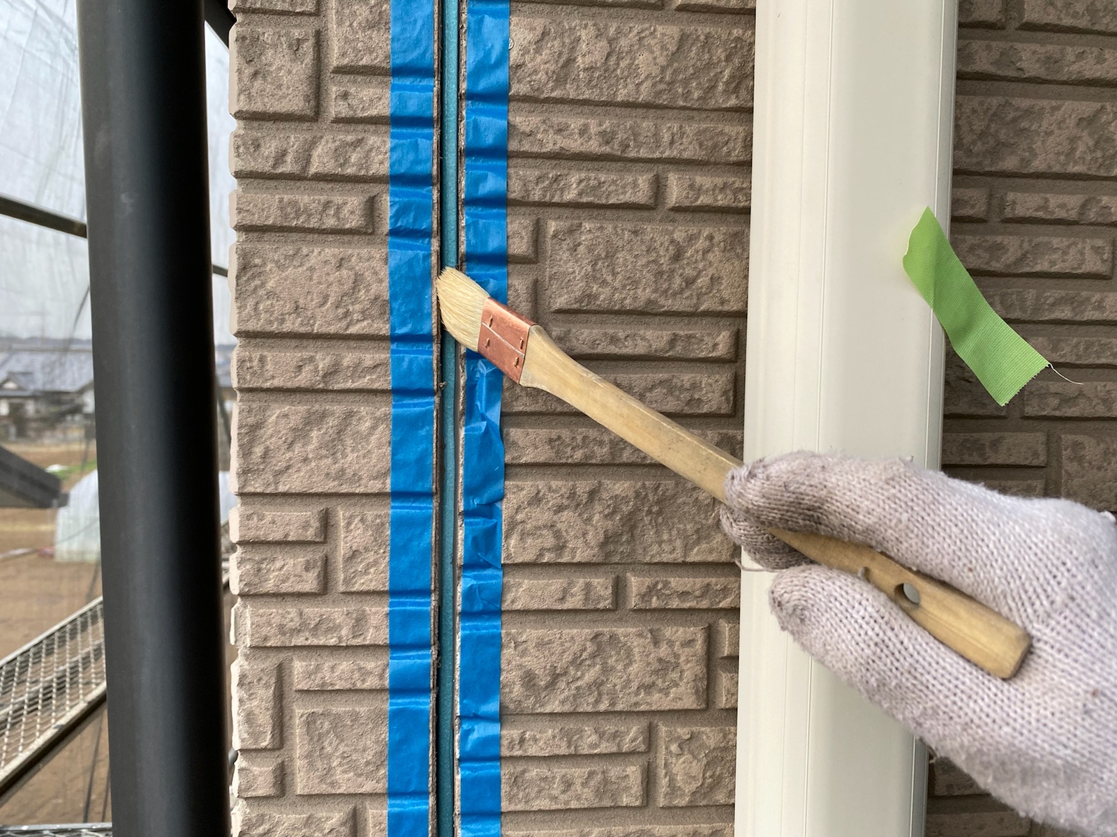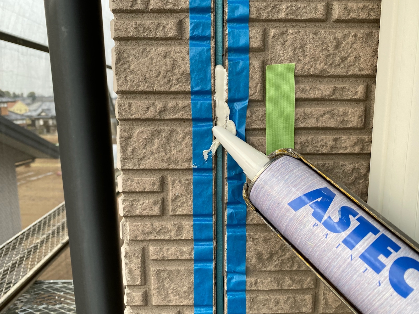 コーキング材の充填です。目地内部に空洞ができないように多めに注入していきます。