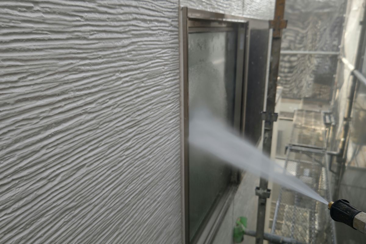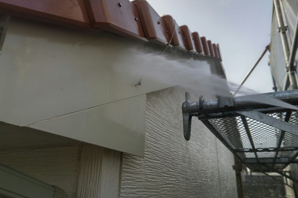 塗料と建材の密着を強くする為に、外壁や屋根に付着した埃・苔・汚れなどを隅々まで洗浄します。