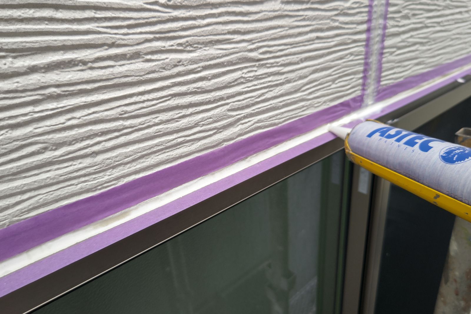 コーキング材の充填です。目地の内部に空洞ができないように多めに注入していきます。