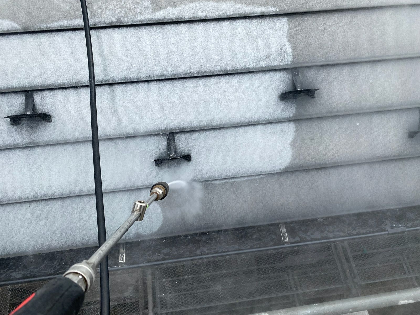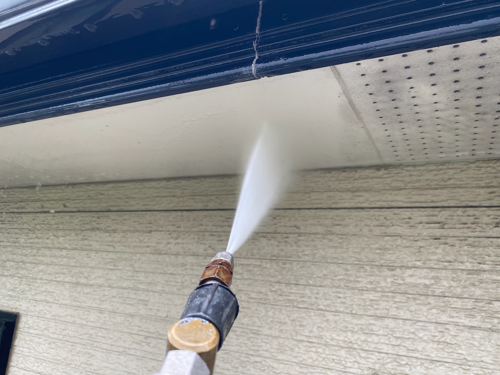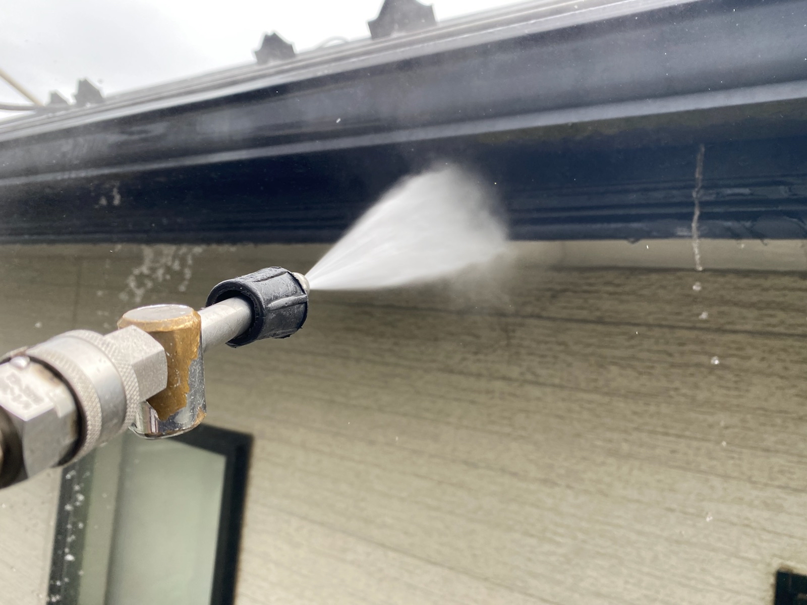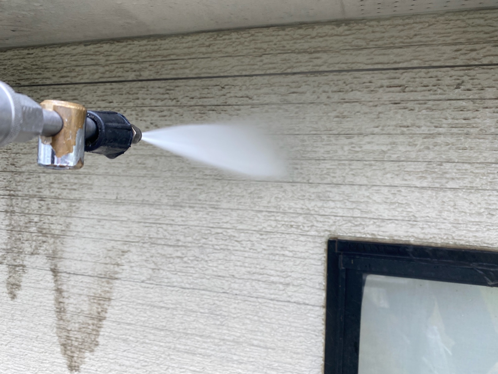 塗料と建材の密着を強くするために外壁や屋根に付着した埃・苔・汚れなどを隅々まで洗浄します。
