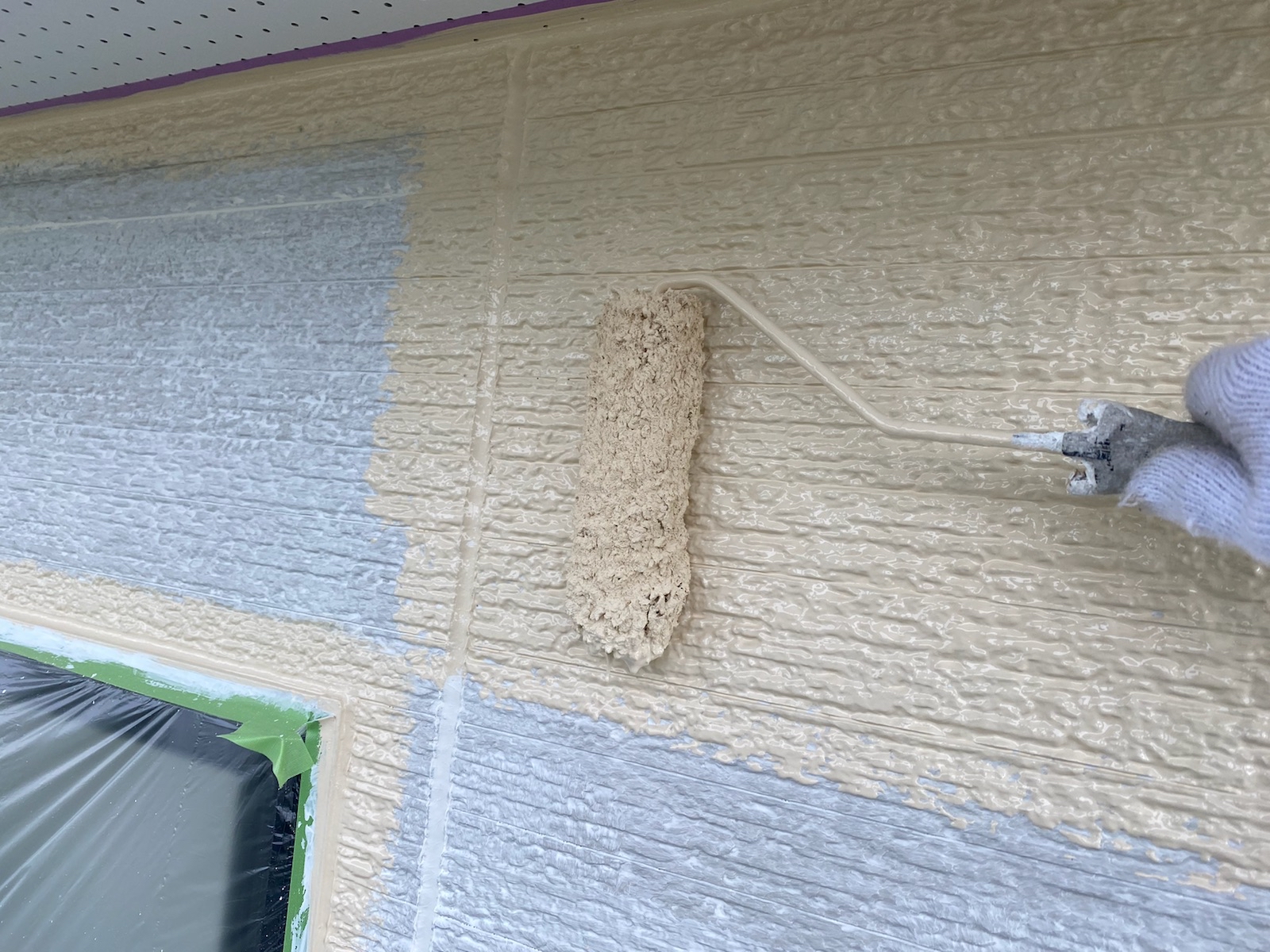 ご希望の異論外壁を仕上げていきます。塗料の性能を最大限に発揮させる為、基準塗布量や乾燥時間を遵守します。