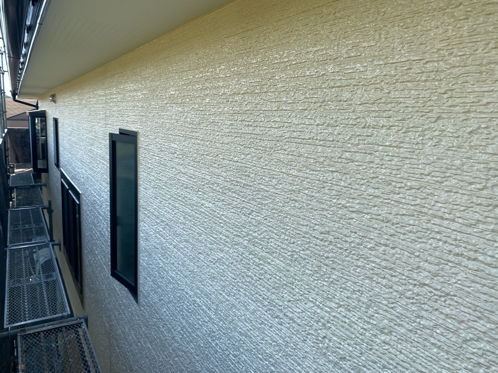 無機と有機のハイブリッドで防水性を発揮する「無機ハイブリッドウォールJY」で施工しました。