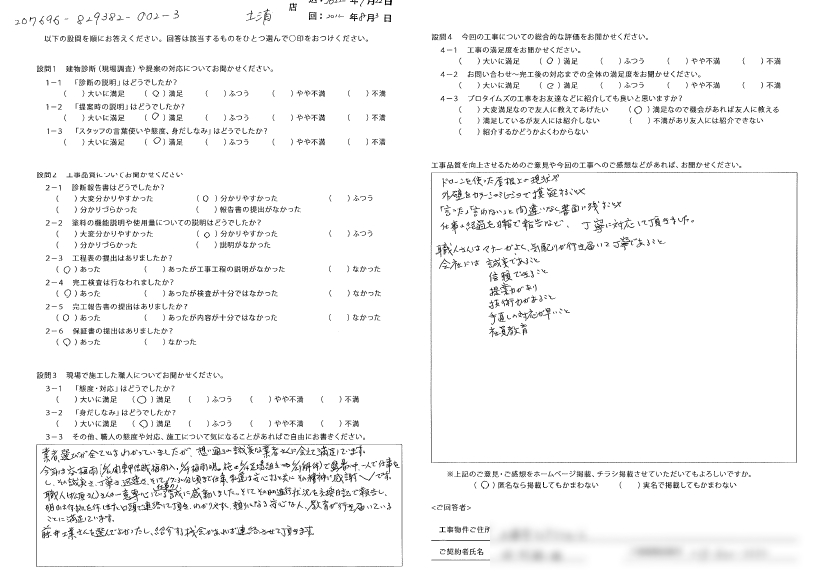 Q.工事品質を向上させるためのご意見や今回の工事へのご感想などがあれば、お聞かせ下さい。