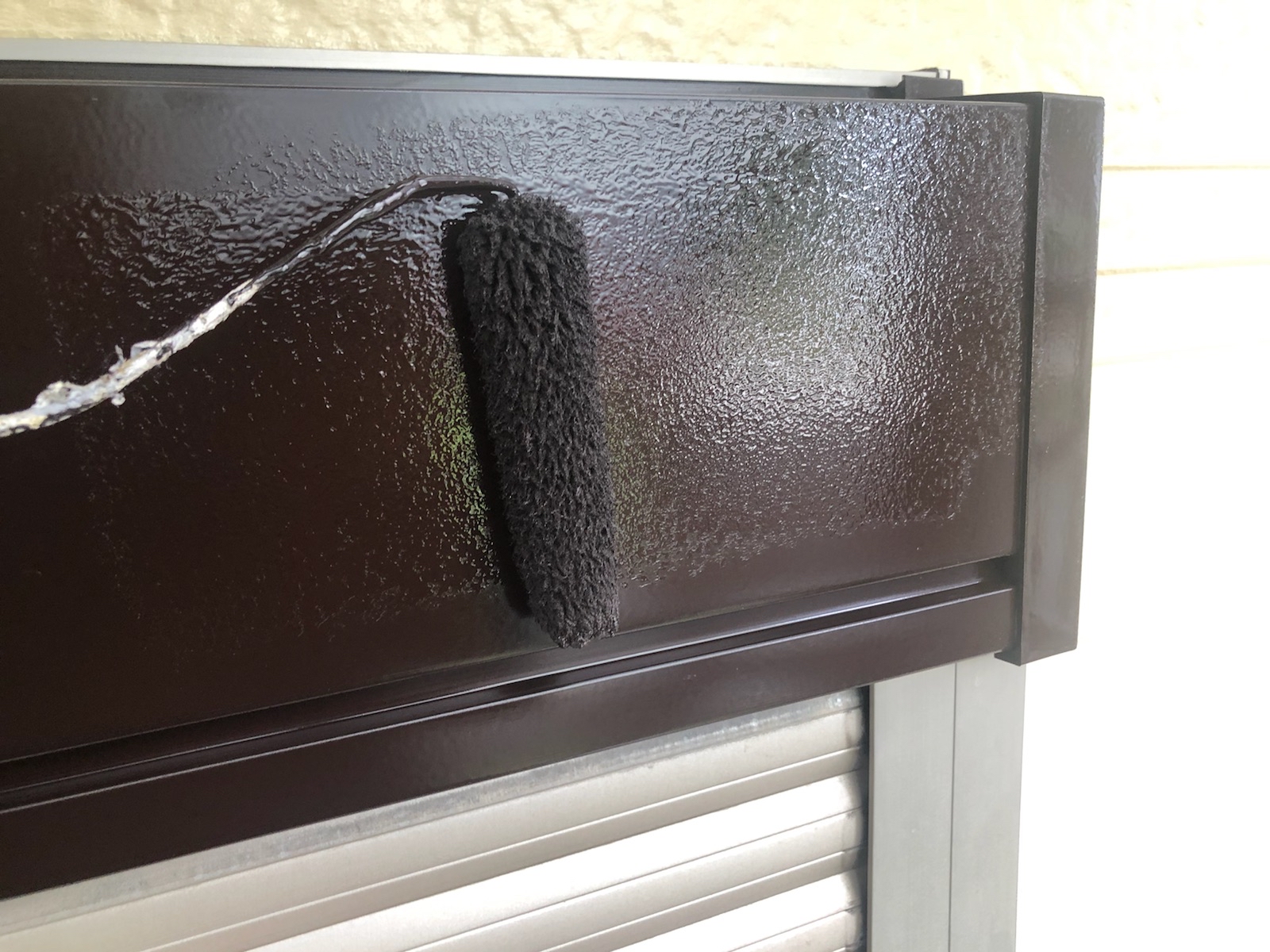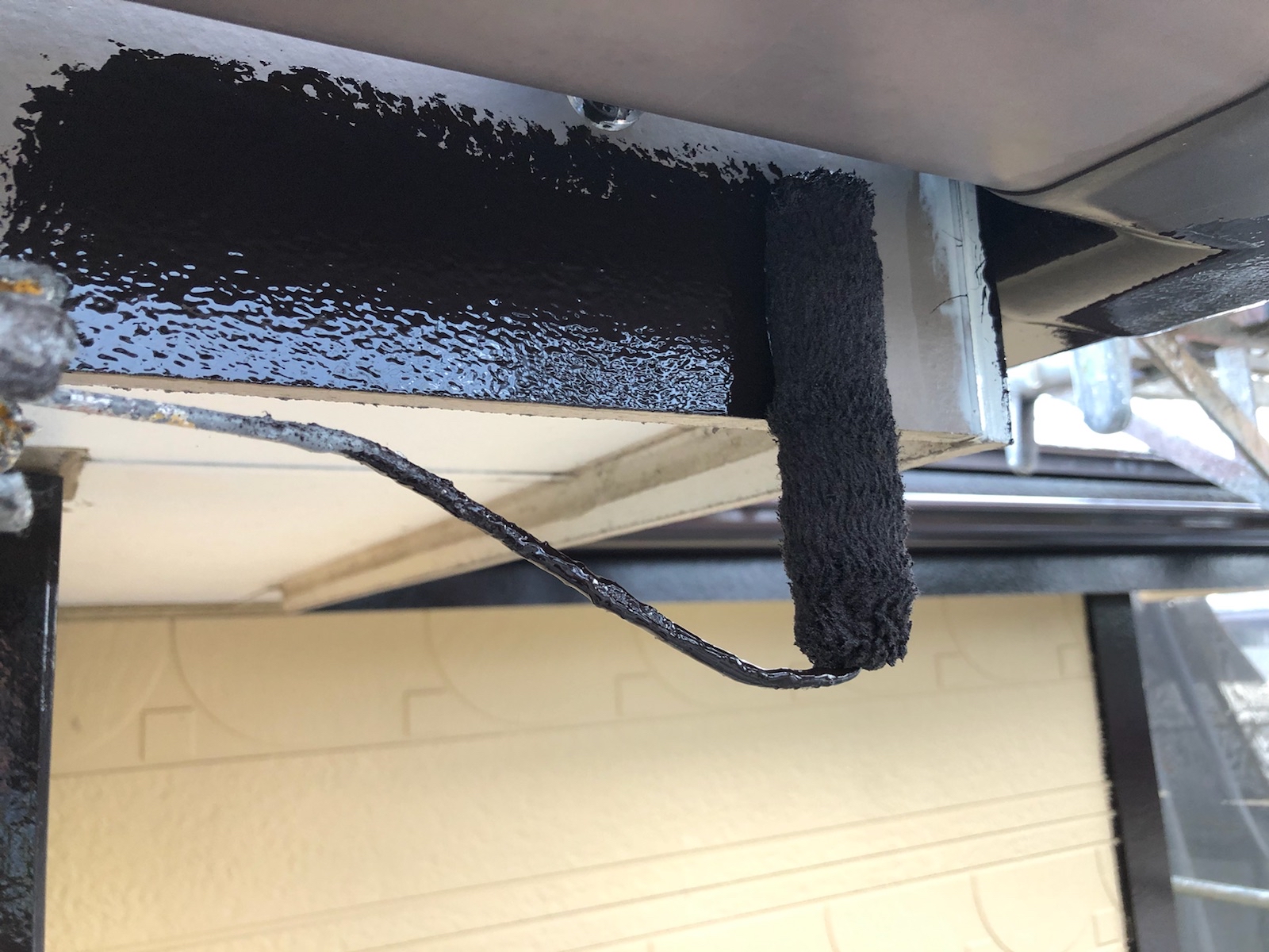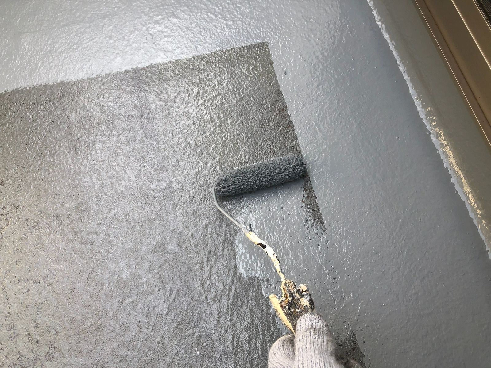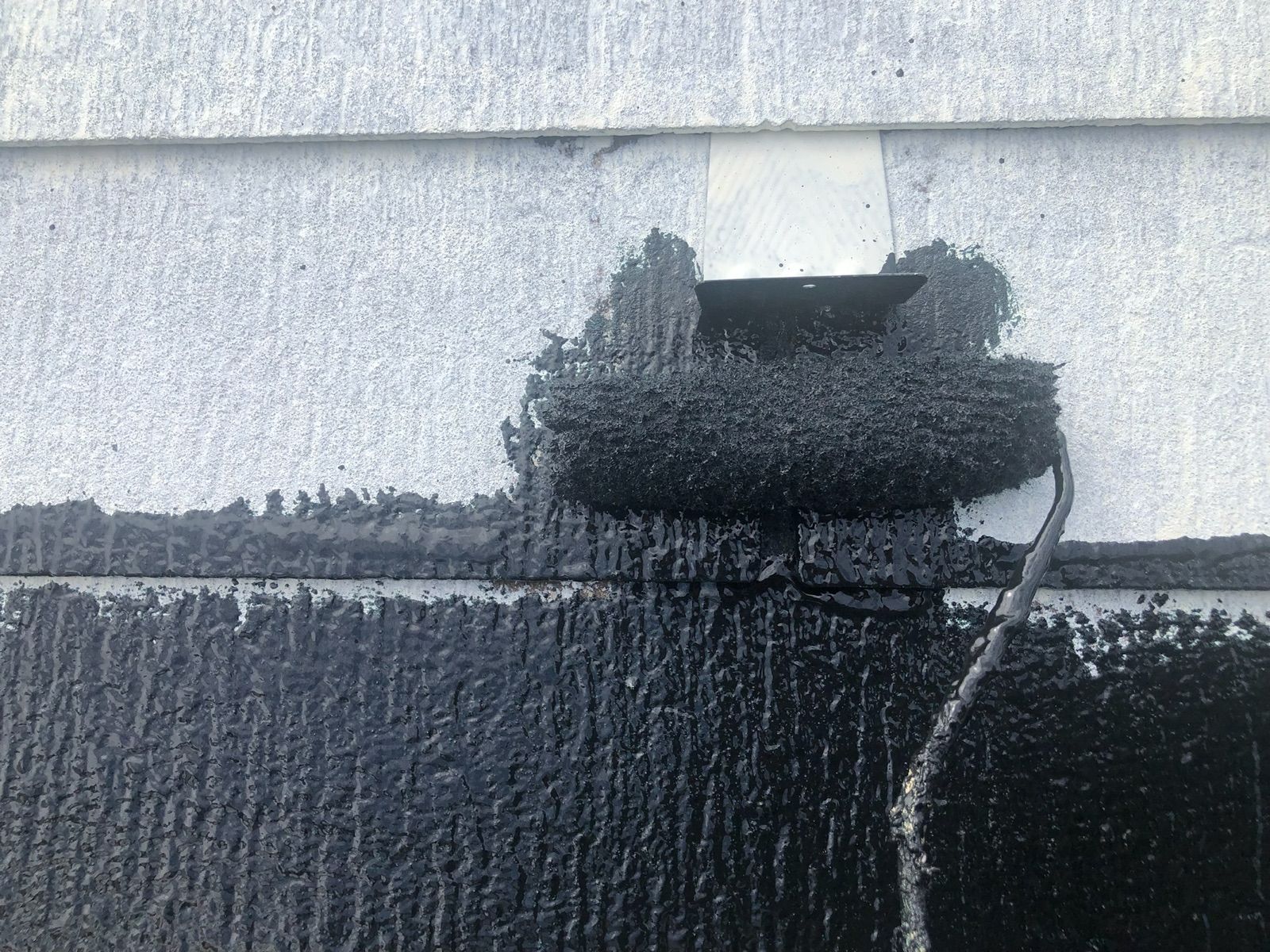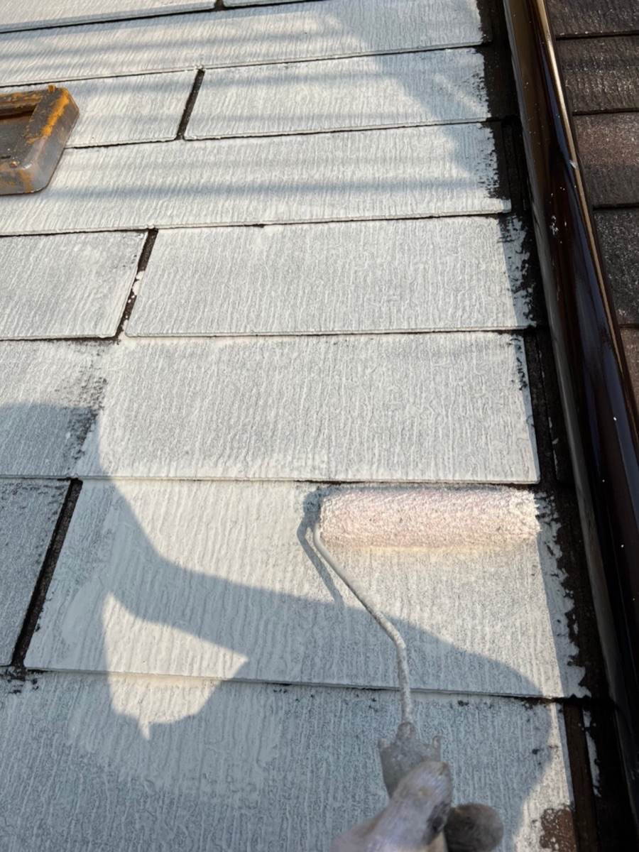 中塗りです。塗装に厚みを確保して上塗り材の補強をすることやなめらかな下地を作るために行います。