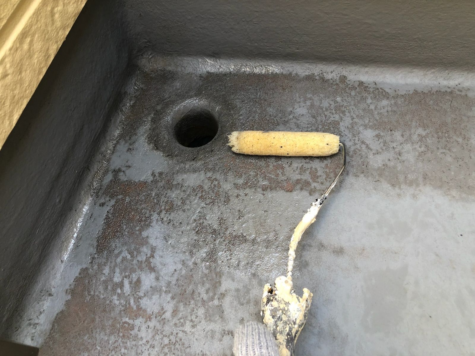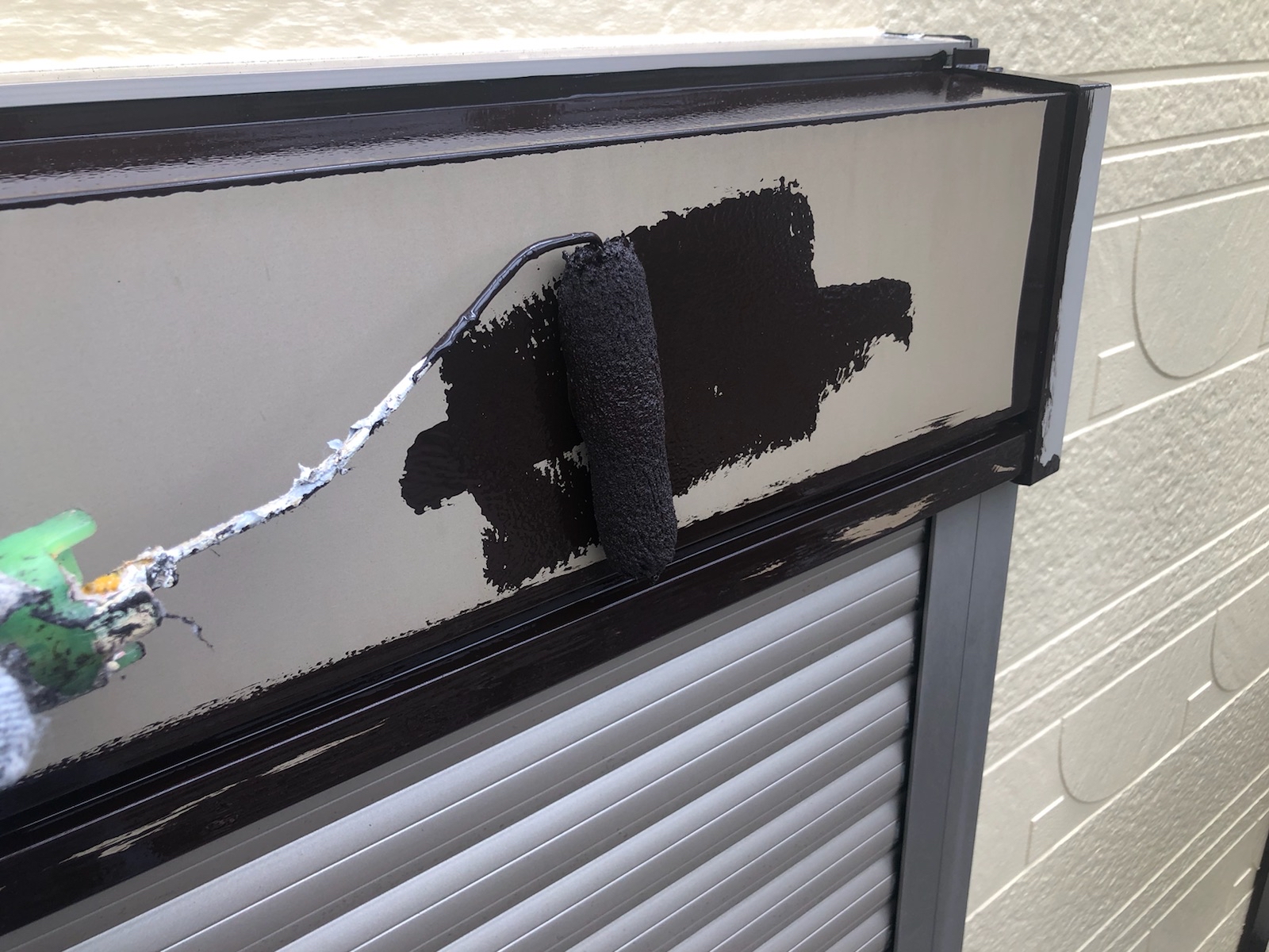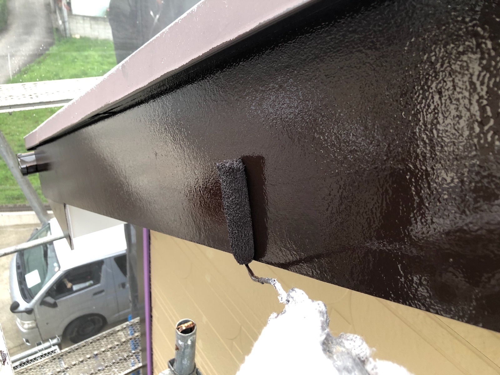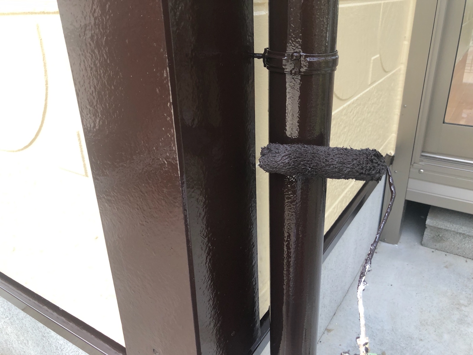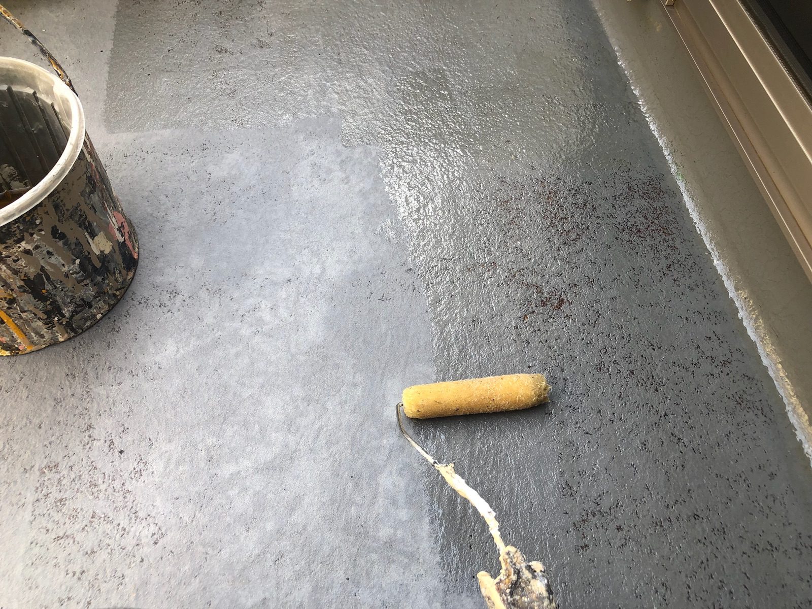 中塗りです。塗装に厚みを確保して上塗り材の補強をすることやなめらかな下地を作るために行います。