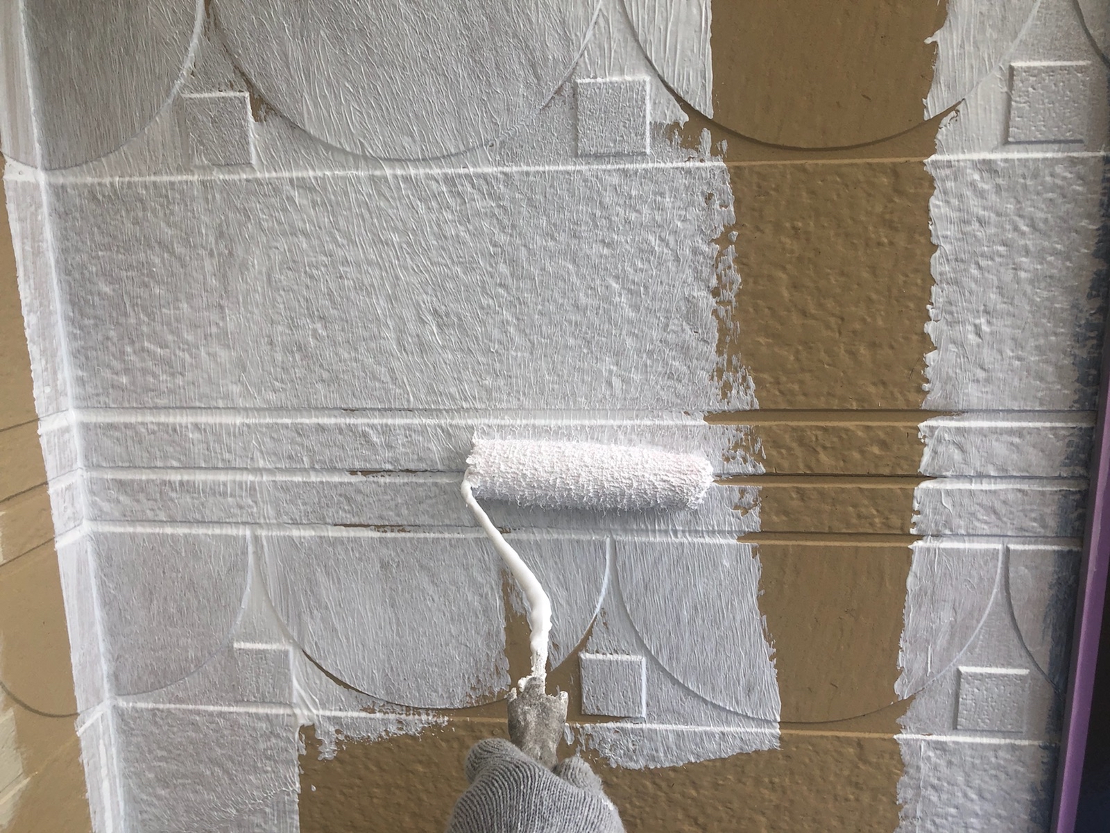 上塗りです。無機と有機とハイブリッドで非常に高い耐候性の塗料「無機ハイブリッドJY-IR」で施工しました。