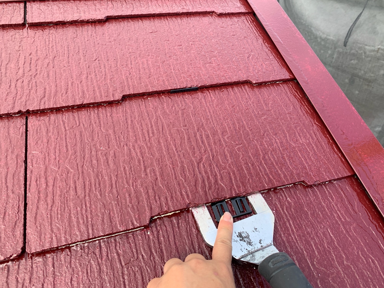 この作業をしないと、屋根の縁が塗料でくっついて、屋根に降った雨水が正常に流れていかず内部に留まり、雨漏りする可能性があります。