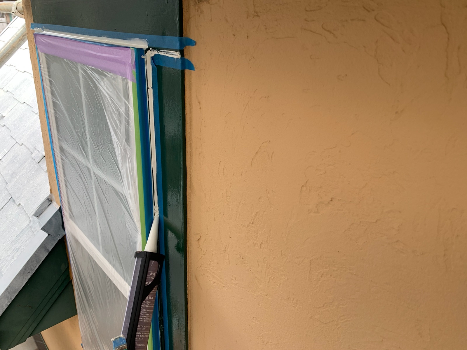 コーキング作業です。目地内部に空洞ができないように多めに注入していきます。