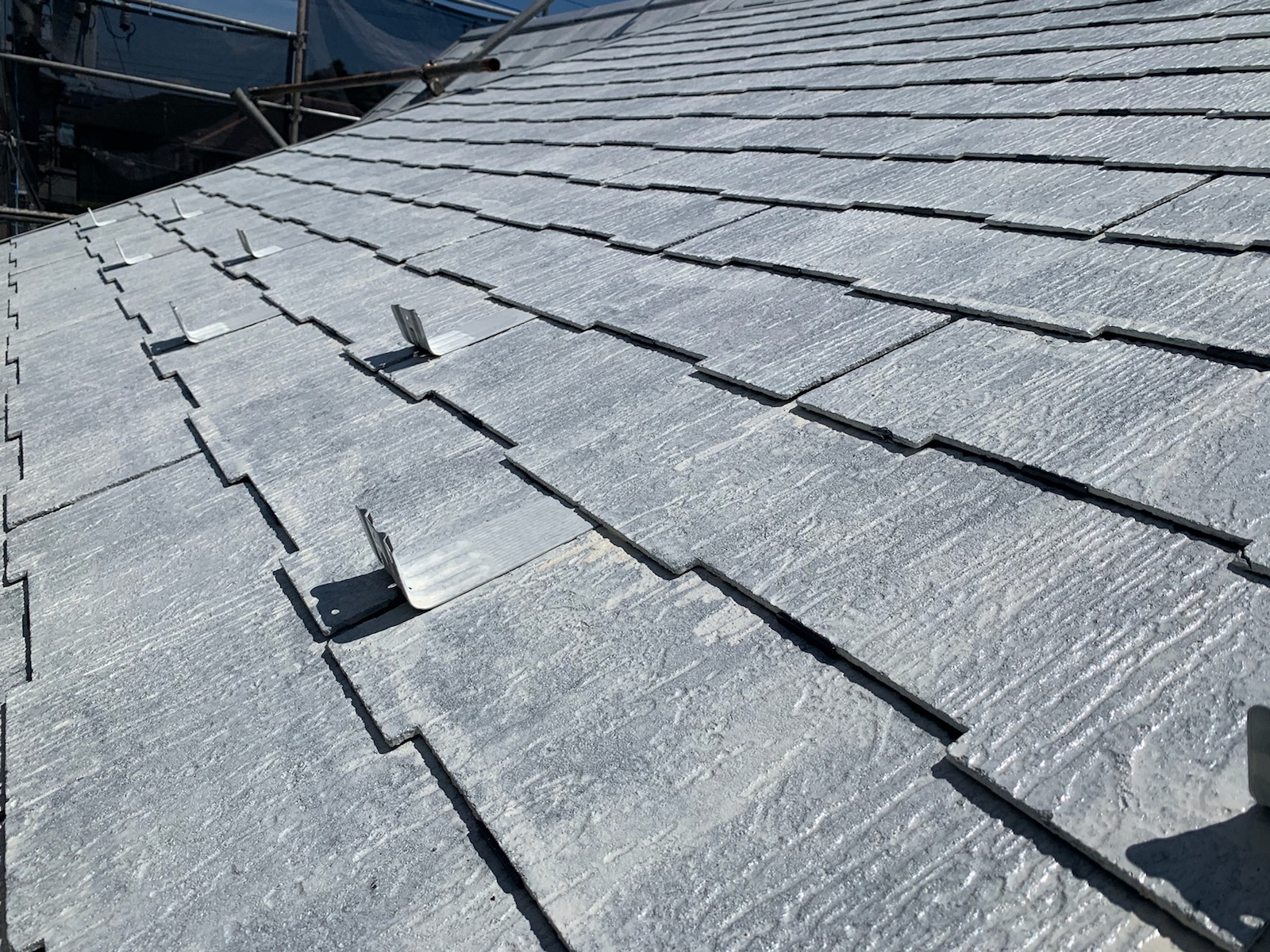タスペーサー取付/屋根材同士がくっつくのを防ぐ縁切りをタスペーサーで行います。