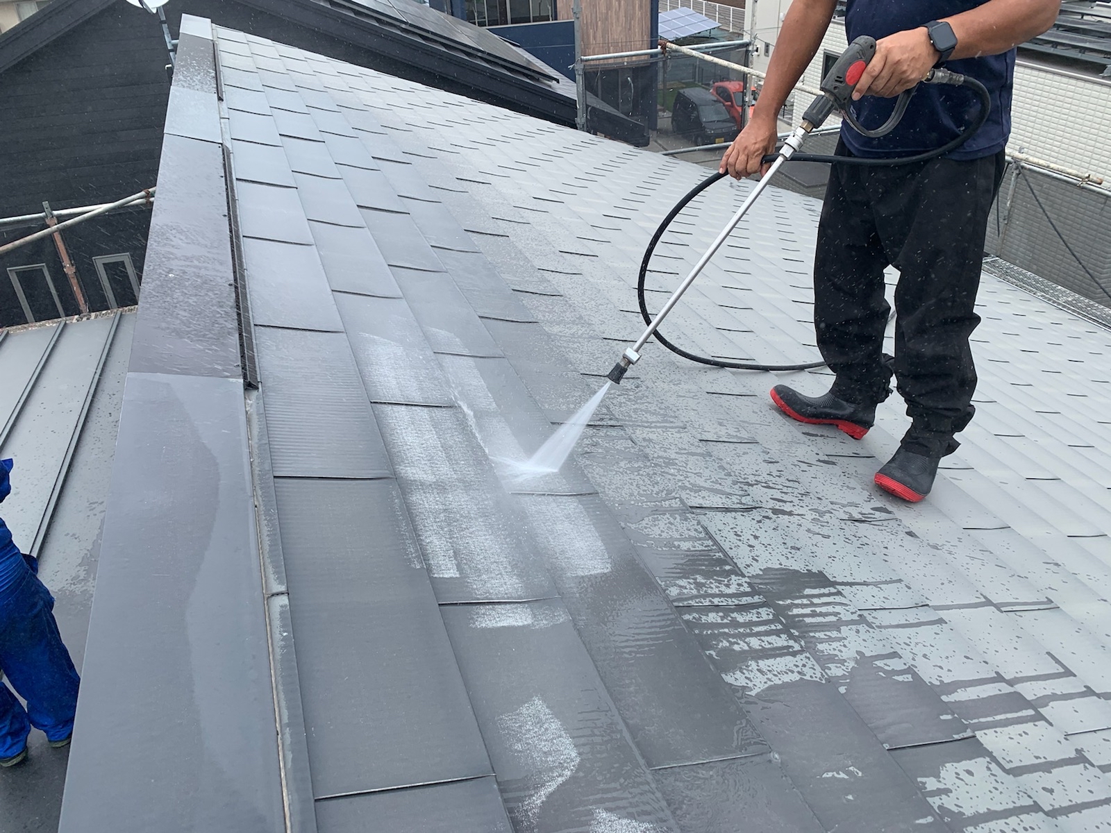 汚れなどが残っていると、仕上がり(見た目)に影響するだけでなく、上から塗装した塗料がはがれしまうこともあるので、洗浄は丁寧に時間をかけて行なわれます。