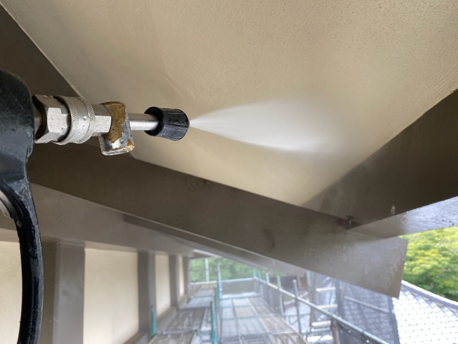 塗料と建材の密着を強くするために、外壁や屋 根に付着したホコリ・コケ・汚れなどを隅々ま で洗浄します。