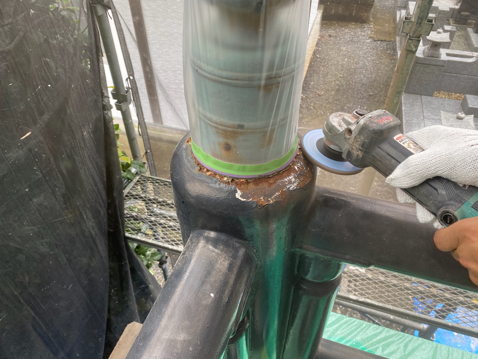 ケレン作業です。古い塗膜や錆びを除去する作業です。